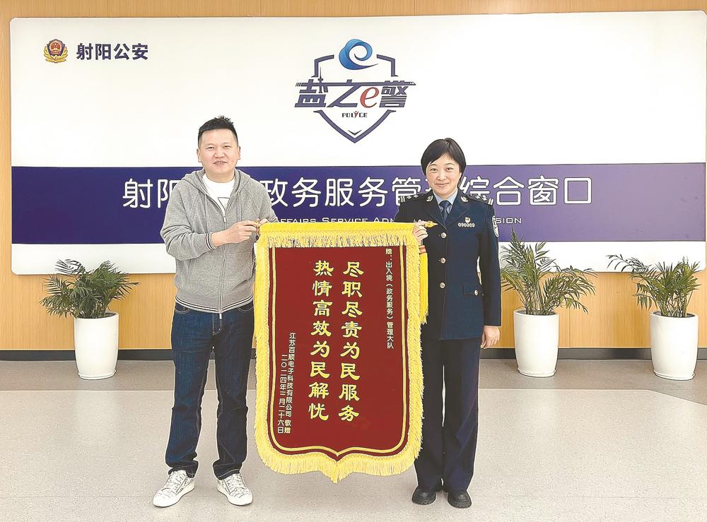 5月30日,盐城市公安局经济技术开发区分局民警在走访悦达起亚汽车有限公司时,得知公司一批韩国来盐员工的居留许可即将到期,民警立即依规开辟绿色通道,提供加急服务。“感谢你们解决燃眉之急!”几天后,企业负责人专程送来一面印有“服务高效办实事,真诚贴心为企业”的锦旗。