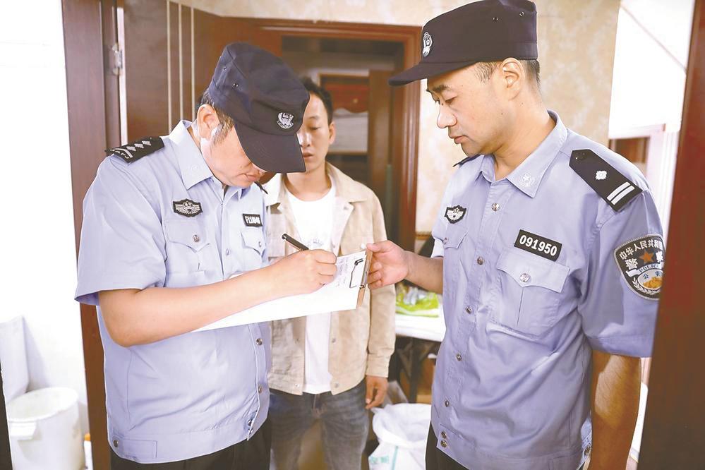 “住宿要登记,消防设施、安全通道要定时检查……”5月26日,盐城市公安局盐南高新区分局新都派出所民警在康乐苑小区周边开展中小旅馆的治安集中清查行动,排查和消除不稳定风险隐患,确保辖区安全。