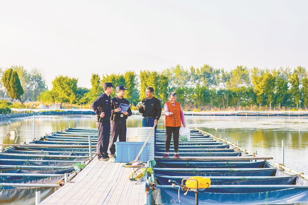 然而,盗窃河鲜、非法捕捞等行为却一度困扰着养殖户和企业。为了让“绿色颜值”能够持续转化为“金色产值”,盐都公安试点实施“驻村融治—驻村兴农”行动,聚力警务前置、服务靠前,为美丽生态赋能产业发展保驾护航。