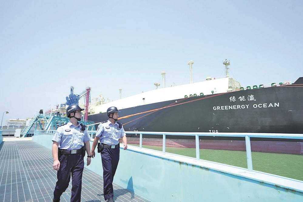 “盐城‘绿能港’作为长三角能源保供‘绿色引擎’,是我国实现碳达峰、碳中和战略的重要一环,今年以来共接卸LNG天然气近200万吨,创历史新高。”中国海油盐城“绿能港”项目副总经理杨培说,“盐城边检站在我公司靠前建立‘绿能港’警务室,为LNG进出口提供预报预检、货物接卸、船舶离港‘一站式’服务,让我们企业得到了实实在在的实惠。”
