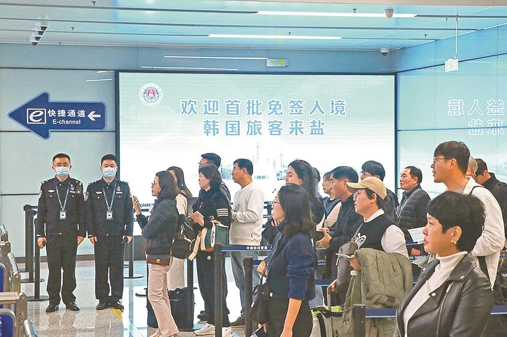 随着中韩免签政策的不断深化和“NICE盐城”入境游的持续推广,周末“打个飞的”来盐城看“苏超”、打高尔夫、看美景吃美食的韩国旅客越来越多。据统计,今年前8个月,盐城空港口岸累计验放出入境韩国籍人员1.35万人次,同比增长61.7%。