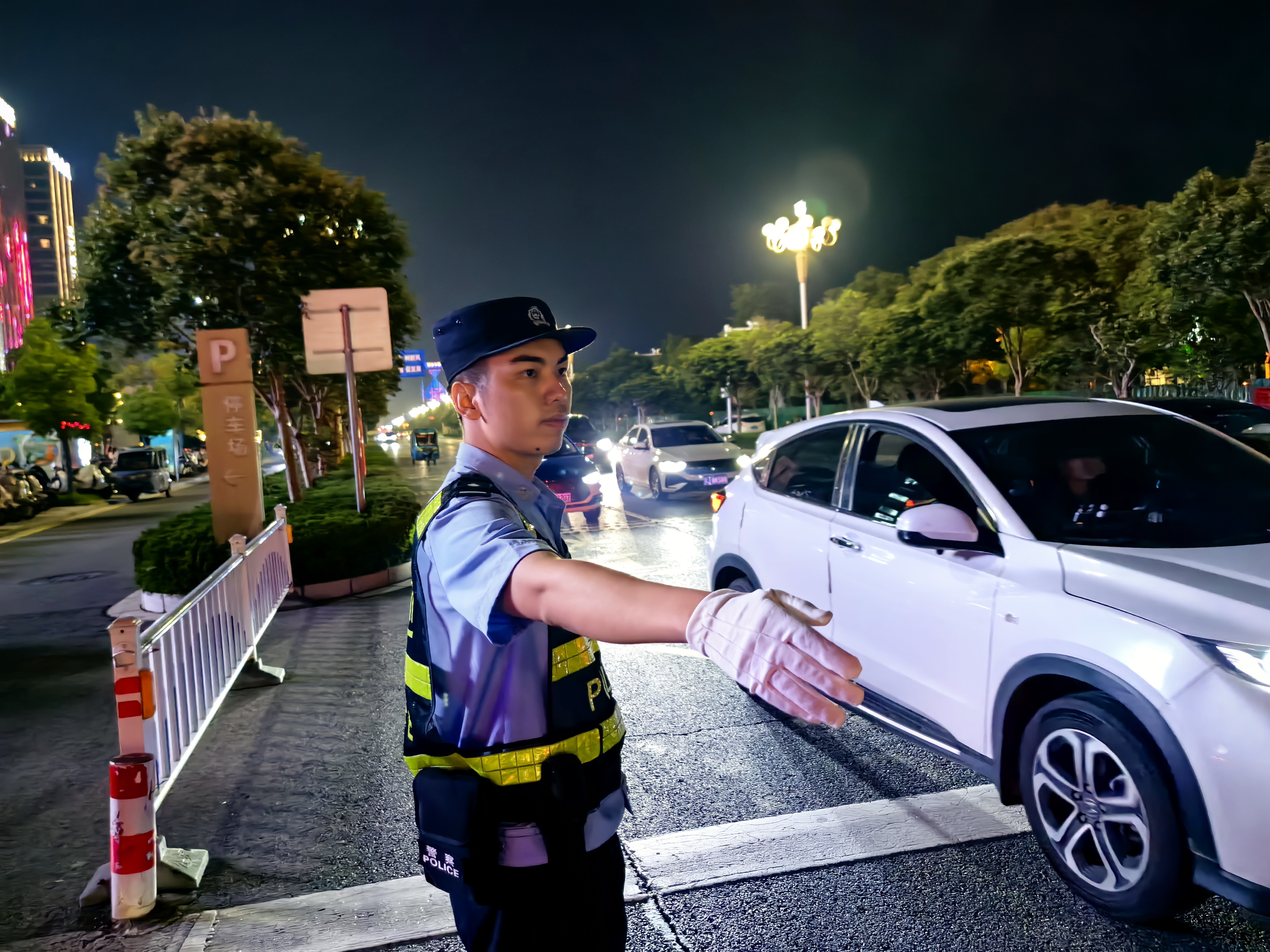 节日期间,公安民警一如既往驻守一线,防事故、保畅通,守护市民游客出行的每一条路。