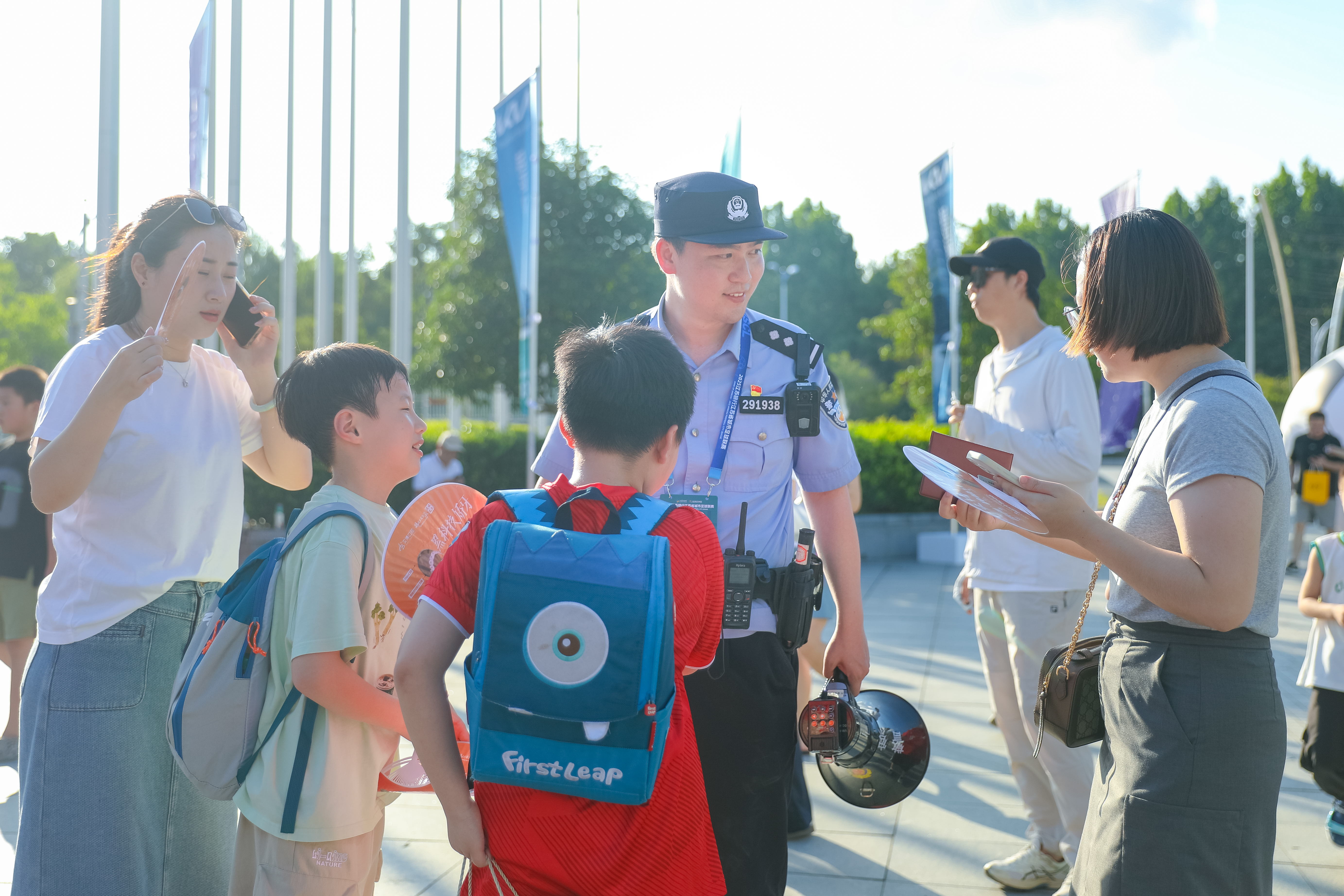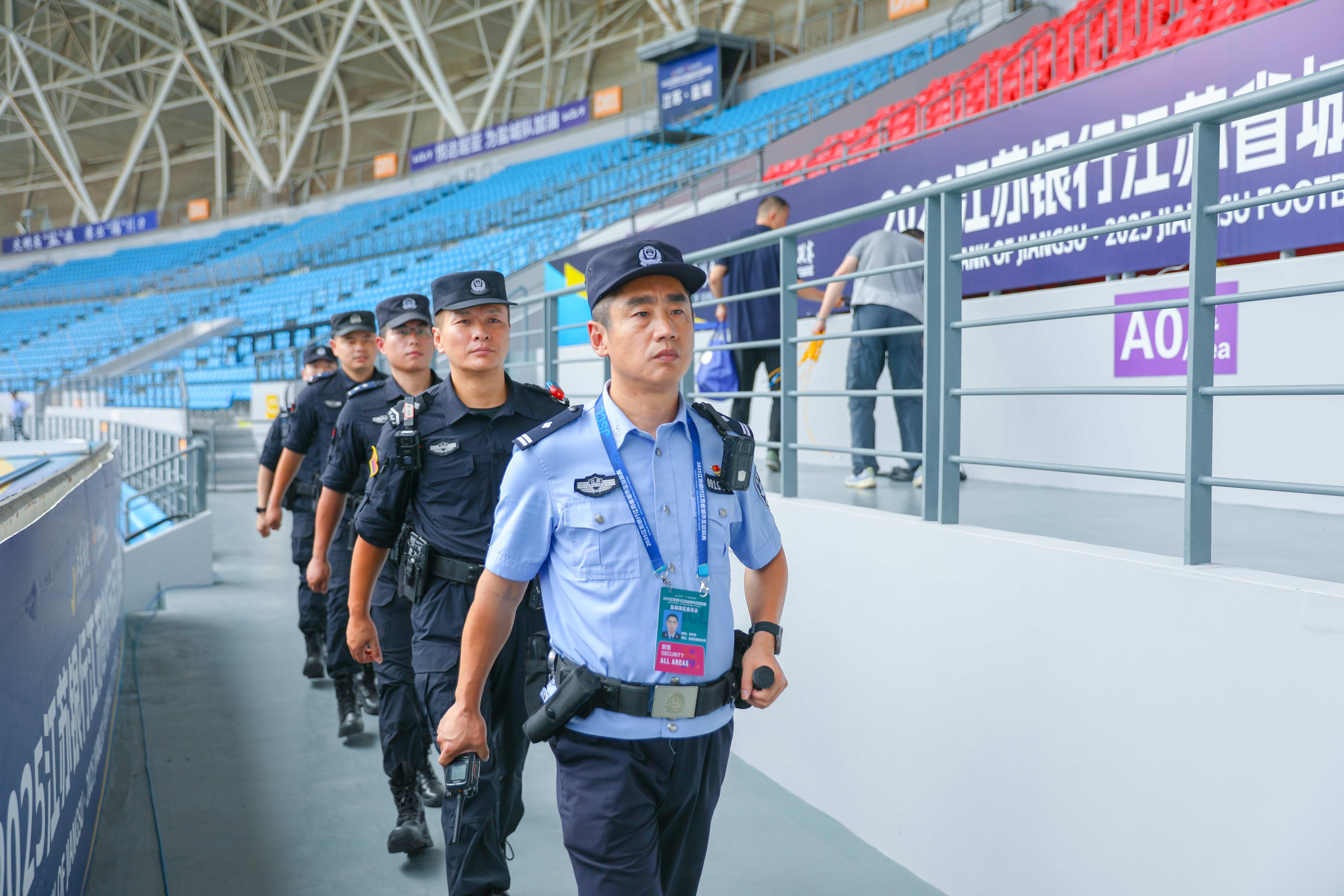 赛事期间,“请大家有序排队,注意脚下安全!”这样的话语时常从刘中存口中传出。他顶着夏日余温,手持装备穿梭在拥挤人流中。他紧盯检票口、通道拐角等重点部位,实时疏导现场秩序,防止人群拥堵;他不间断开展巡逻,仔细排查潜在安全隐患,确保突发情况第一时间得到处置。