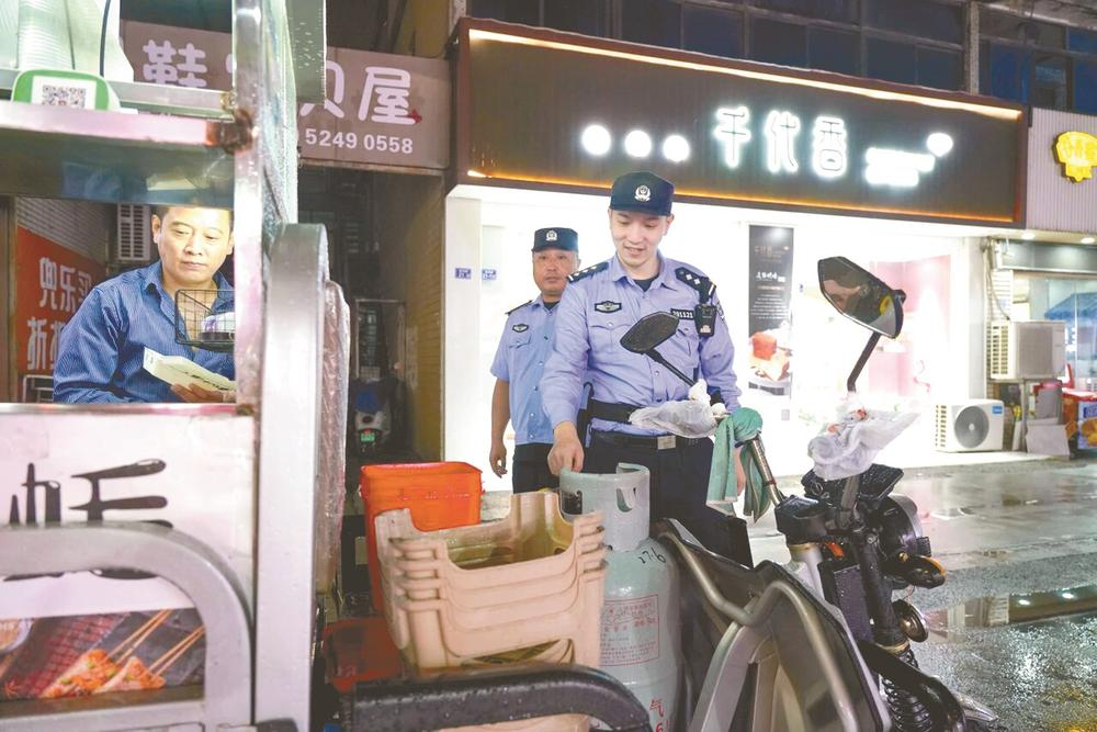 “冬天晚上走在回家路上,看到警灯闪耀,外面再冷,心里也感觉暖暖的,有警察的守护,感到很安心!”在农民街经营夜市生意的陈女士对一旁巡逻的民警表示。
