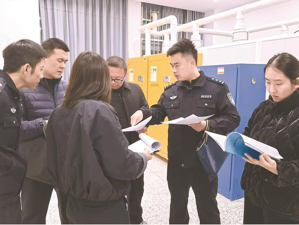 检查过程中,民警重点围绕实验室易制毒化学品的采购、储存、使用、登记等环节进行了细致核查,逐一清点硫酸、盐酸等易制毒化学品的库存数量,细致核对采购台账与实际存量的一致性,检查储存场所是否符合安全标准,通风、消防、防盗等设施是否完好有效。同时,详细查阅使用登记册、废弃物处置记录等资料,重点核实领用审批流程的规范性、使用记录的完整性和可追溯性,确保各环节实现闭环管理。