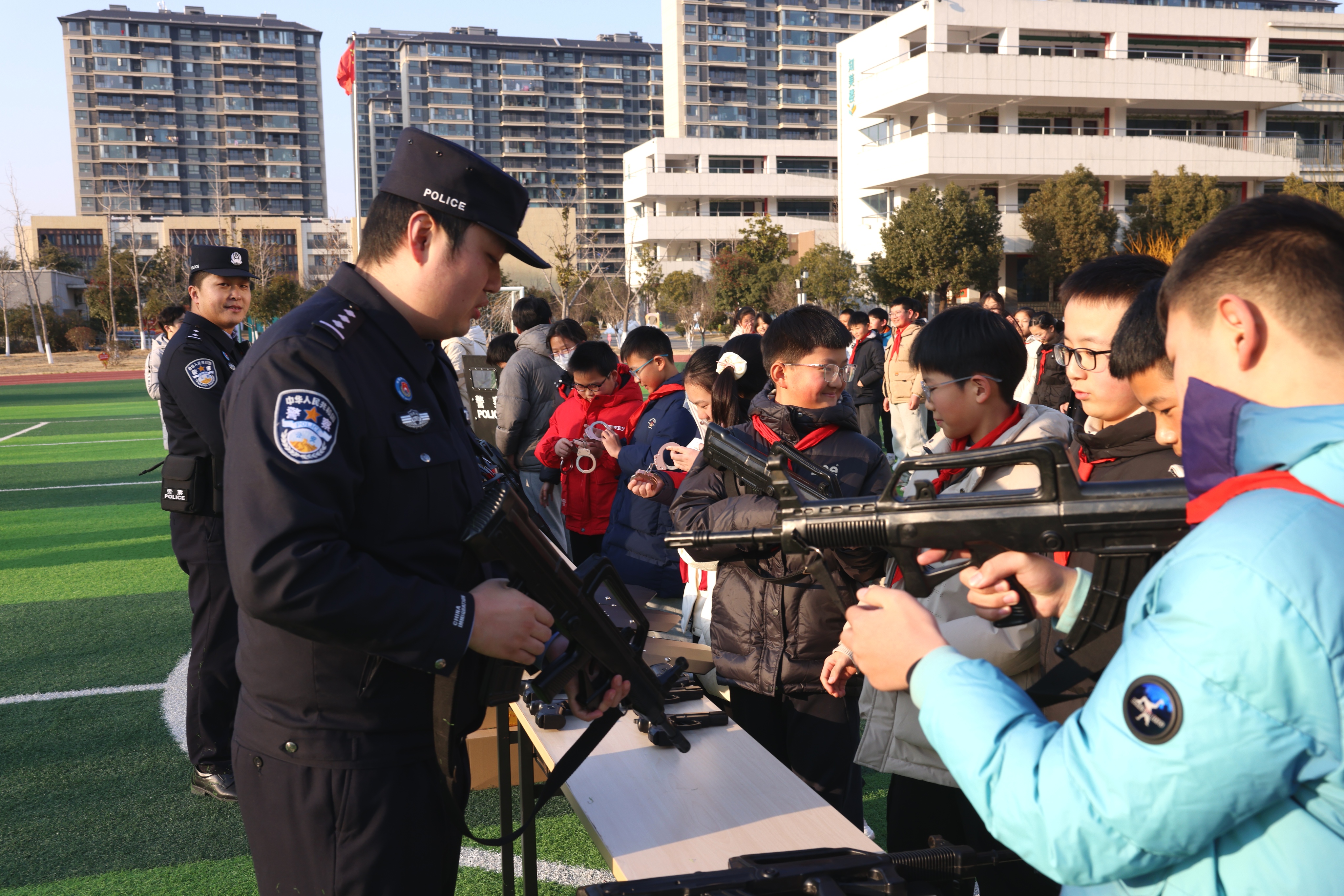 1月8日,活动现场,警用装备展示区成为学生们追捧的焦点。在边检民警的专业引导下,民警结合实战场景详细讲解装备的功能特性与应用场景,邀请学生们近距离触摸、细致观察各类警用器材,沉浸式体验让学生们直观感受安全防护的重要性,探索热情被充分点燃。