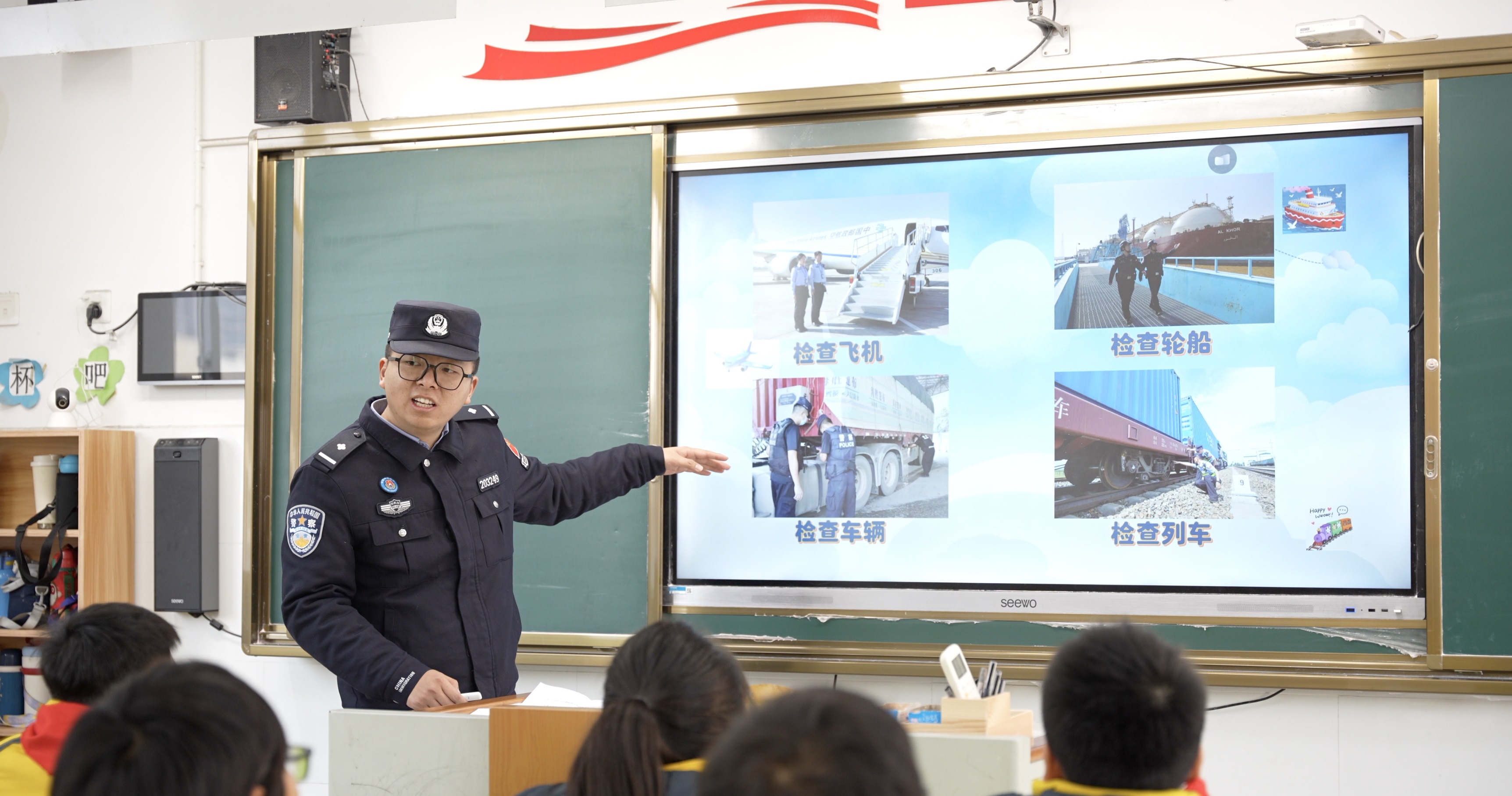 在第六个中国人民警察节即将到来之际,盐城边检站深化警校共建机制,来到盐都区实验小学开展安全宣传教育活动,将生动鲜活的国门安全知识送到学生身边,以专业力量为学生们青春成长筑牢安全屏障。