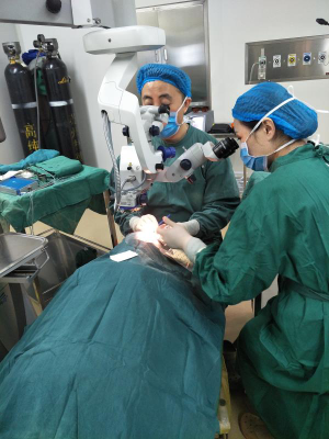 揭牌仪式结束后,刘庆淮主任率领施庄眼科医院医护人员进行查房,专家袁松涛还为眼疾患者进行手术。