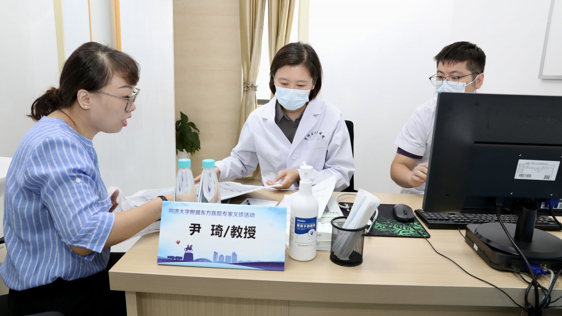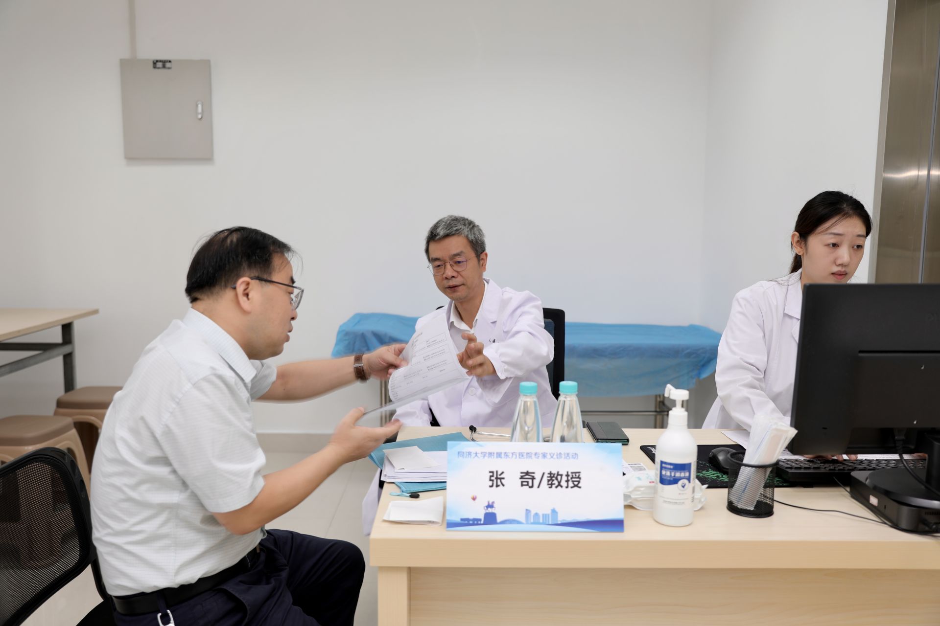 开幕式后,徐美东教授、胡海教授分别奔赴手术室,进行“ESD (内镜黏膜下剥离术)”“单孔腹腔镜胆囊切除术”“腹腔镜胆总管切开取石术”“贲门癌根治术”等多台手术示教。同济大学附属东方医院医务部主任陈兴屹作了题为《智慧医院新模式下医疗质量管理的实践与思考》的专题讲座分享。多位来自上海的专家分别在内科和外科诊疗区带教坐诊,吸引了百余名慕名前来的市民治疗。
