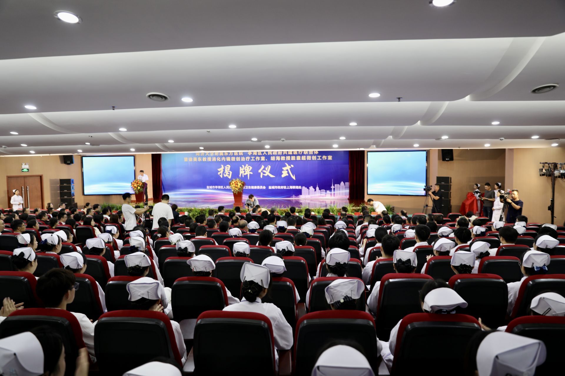 9月16日,同济大学附属东方医院与亭湖区人民政府共建医疗联合体暨徐美东教授消化内镜微创治疗、胡海教授胆囊超微创治疗等专家工作室揭牌仪式在亭湖区人民医院举行,现场百余名与会者共襄盛举。此次,院府共建医疗联合体揭牌仪式的举行,标志着双方合作步入一个崭新阶段,为盐城的卫生事业发展注入新的动能。挂牌仪式结束后举办的专家义诊、手术示教、专题讲座等系列活动,更切实地为盐城群众带来了优质医疗服务和健康新福音。亭湖区委书记盛艳,同济大学附属东方医院副院长徐美东,市卫健委党委书记、主任崔国静出席并分别致辞。市政府驻上海联络处主任王胜参加揭牌。