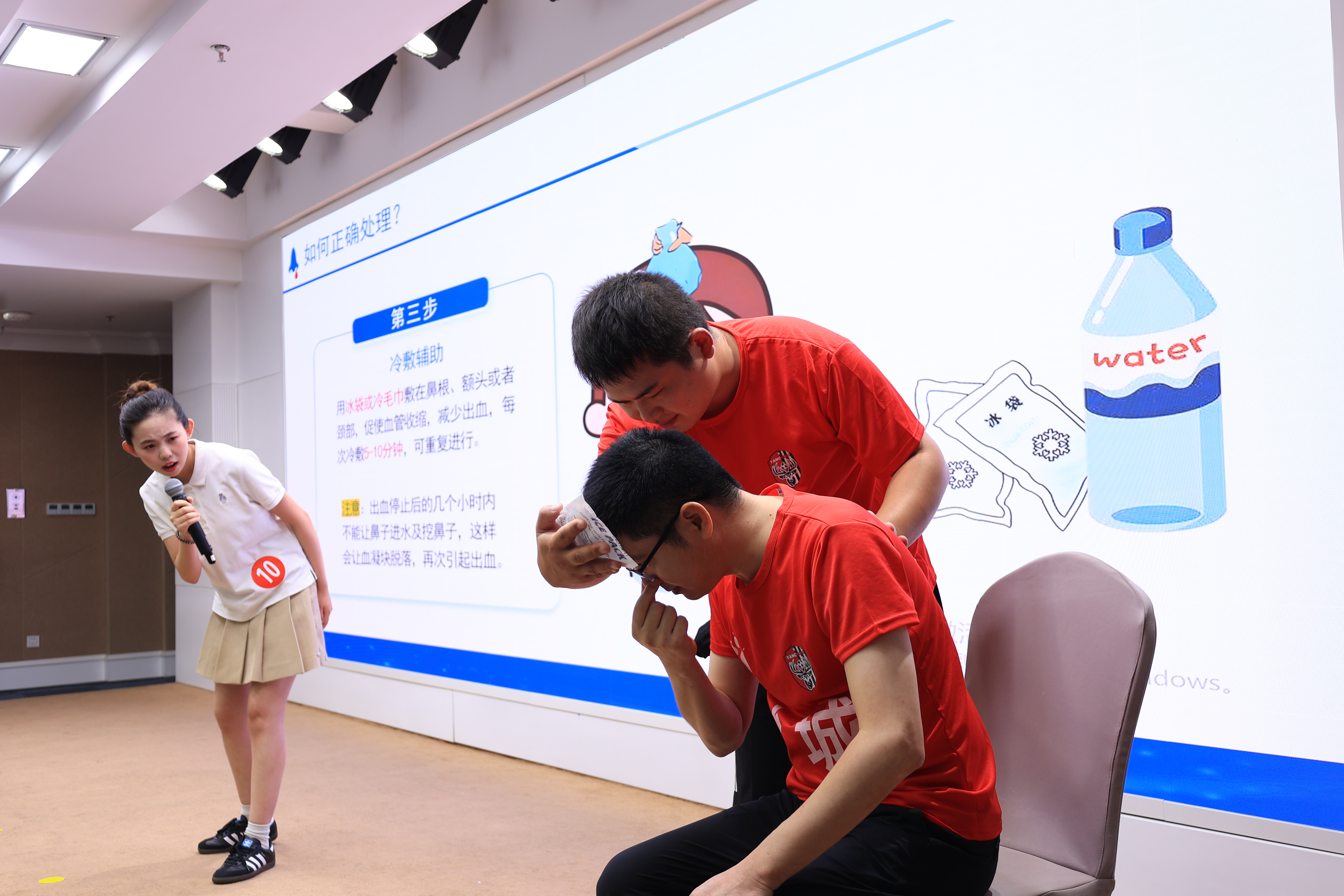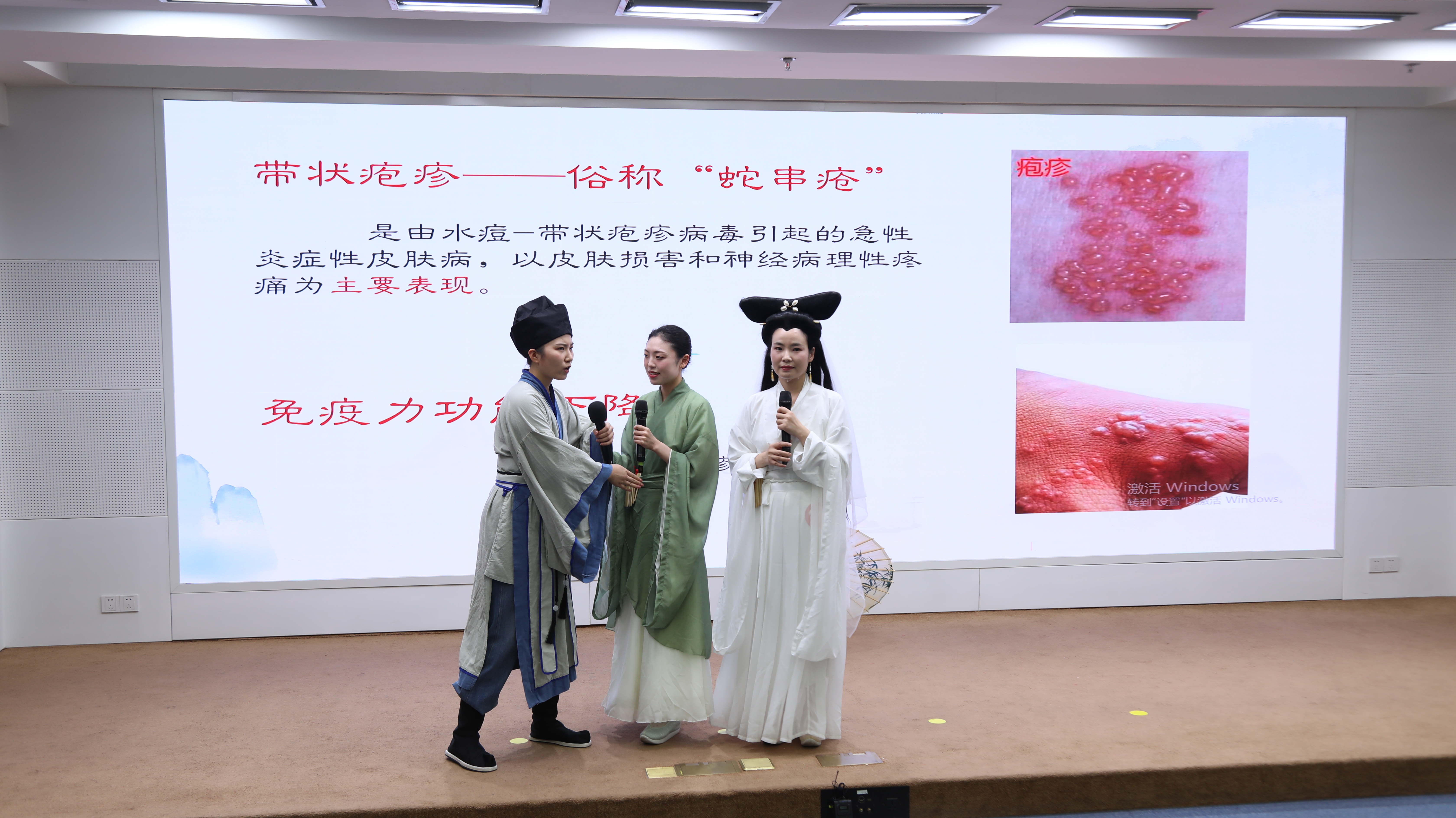 如何让中医药健康传播更“干净”?市中医院带来的节目《太医院吐槽大会》《千年“串”奇》在传统文化底蕴中,将“靠谱”的中医知识表达得生动形象。医护人员巧借各种“吐槽”实则弘扬正能量,让大家看到了医务人员的不易和中医传承的可贵。而市急救医疗中心带来的节目《电视机前的红色警报》同样讲述生活日常:一对小姐弟在家看“苏超”,弟弟突发鼻出血,这时姐姐应该如何做……