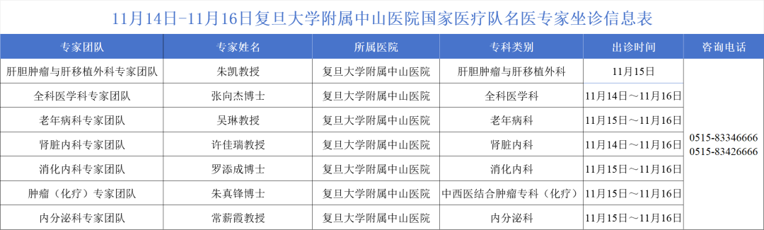 为满足广大患者对优质医疗资源的迫切需求,助力区域诊疗水平持续提升,复旦大学附属中山医院特选派知名专家团队定期来我院坐诊,为群众提供高水平诊疗服务。现将具体信息公告如下: