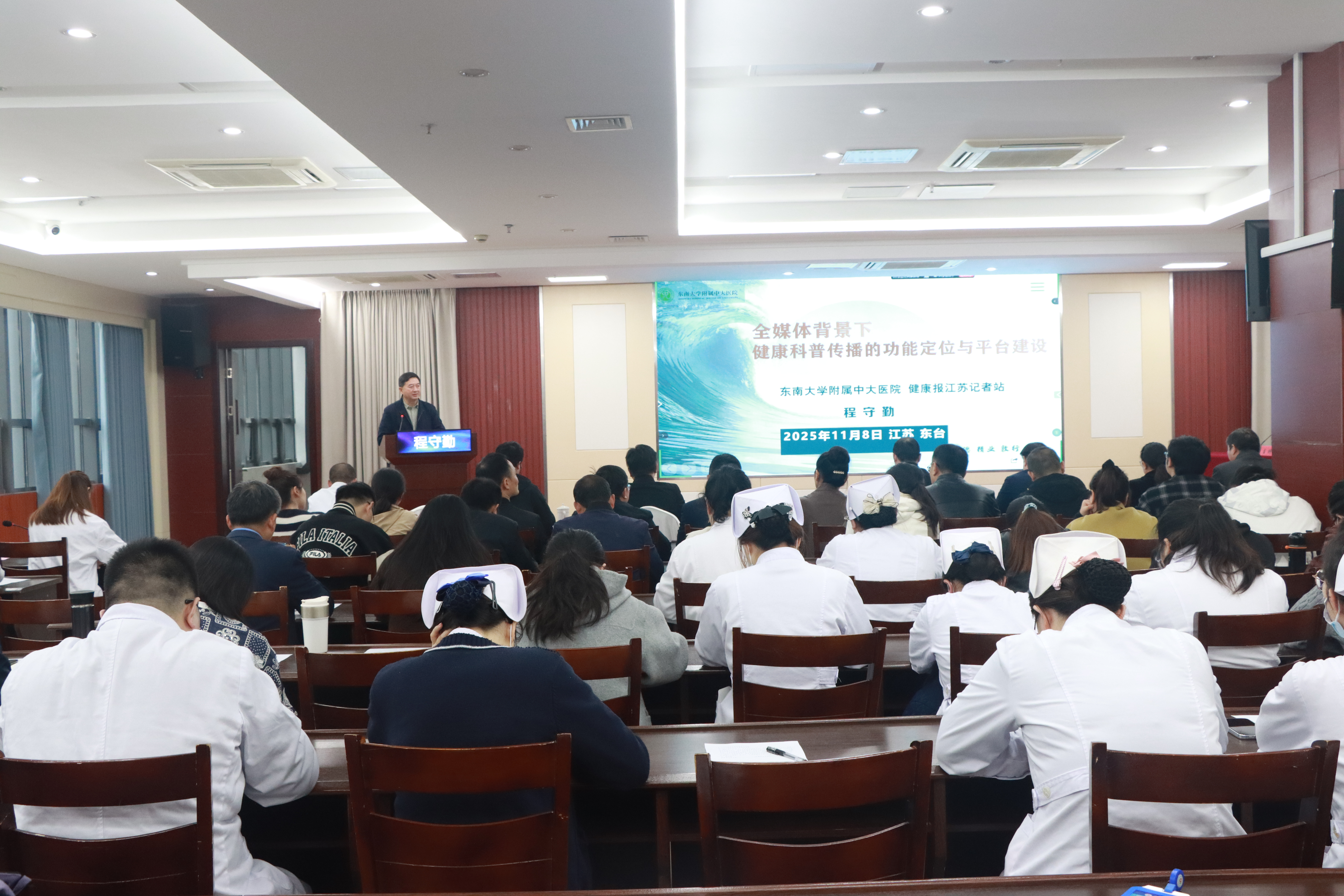 讲座期间,东南大学附属中大医院健康传播专家、健康报江苏记者站站长程守勤解析了健康科普传播的功能定位与平台建设,南京中医药大学附属南京市中西医结合医院杨璞主任指明了中医文化科普的创新路径,盐阜大众报报业集团社事融媒中心主任、盐阜大众报文化传媒公司董事长姜琰分享了融媒时代医卫新闻采写技巧。