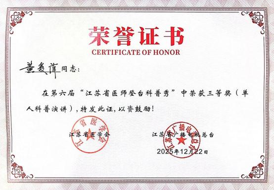 比赛中,该会选送的盐城市第三人民医院呼吸内科与内分泌科医护团队联合创作的原创科普情景剧《积“肌”向上“肌”不可失》荣获二等奖,亭湖区人民医院药剂科黄爱萍在单人科普演讲《哪吒吃的“迷迷眠眠丹”到底为何药?》荣获三等奖。(辛问)