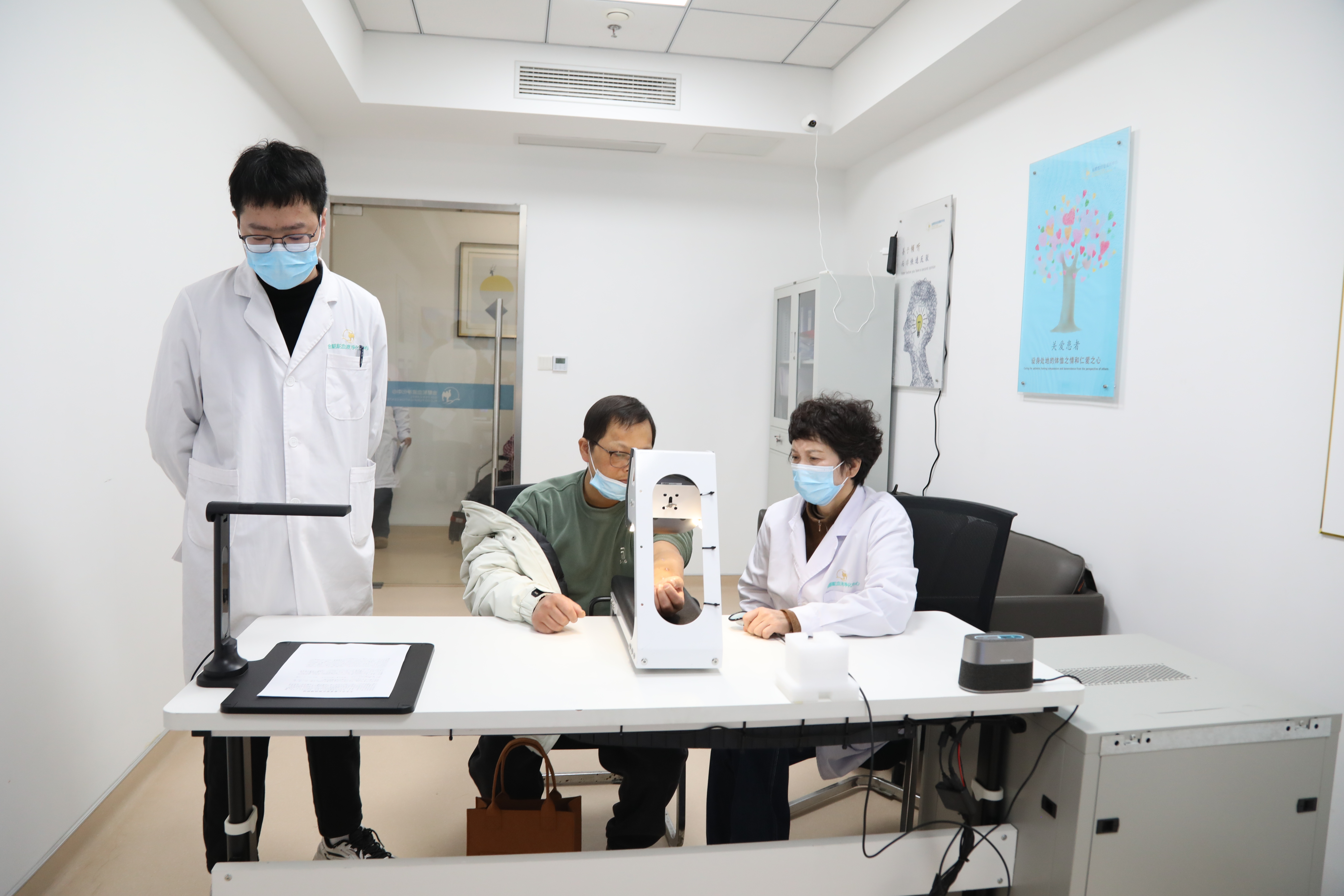 “我左手臂做血液透析动静脉内瘘的地方鼓起一块,比其他病友的要大些,一直有些担心。想去大医院,但体力吃不消,并且隔两天就要透析,很不方便。今天经过叶教授的仔细查看,一直困扰我的问题,终于解决了。”来自大丰的患者叶女士告诉记者,叶教授非常耐心,把她所有的指标看完后,又通过听诊仪听了血流回声,高拍仪下看了血管凸出处,告诉她,“放心,感觉鼓起的地方大,是因为你整个人太瘦了,不是其他问题,不要多想。”