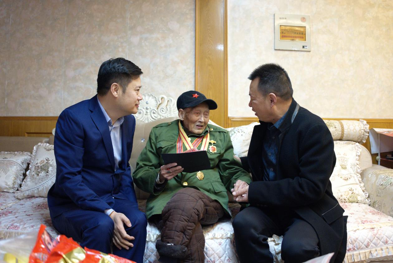"一个有希望的民族不能没有英雄,一个有前途的国家不能没有先锋。"抗战老兵是从烽火硝烟中走来的英雄,在和平年代仍默默坚守着精神高地,他们始终是最可敬的人。1月16日,市红十字会党组书记、常务副会长征汉年,市红十字会党组成员、副会长徐维林,建湖县委常委、宣传部部长陈伟,盐城倍美口腔董事长陈林岗一行带着慰问品、慰问金与诚挚的敬意,专程赴建湖县走访抗战老兵,开展“情暖新春·致敬英雄”活动,以实际行动传递社会对退役军人的崇高敬意与关怀。