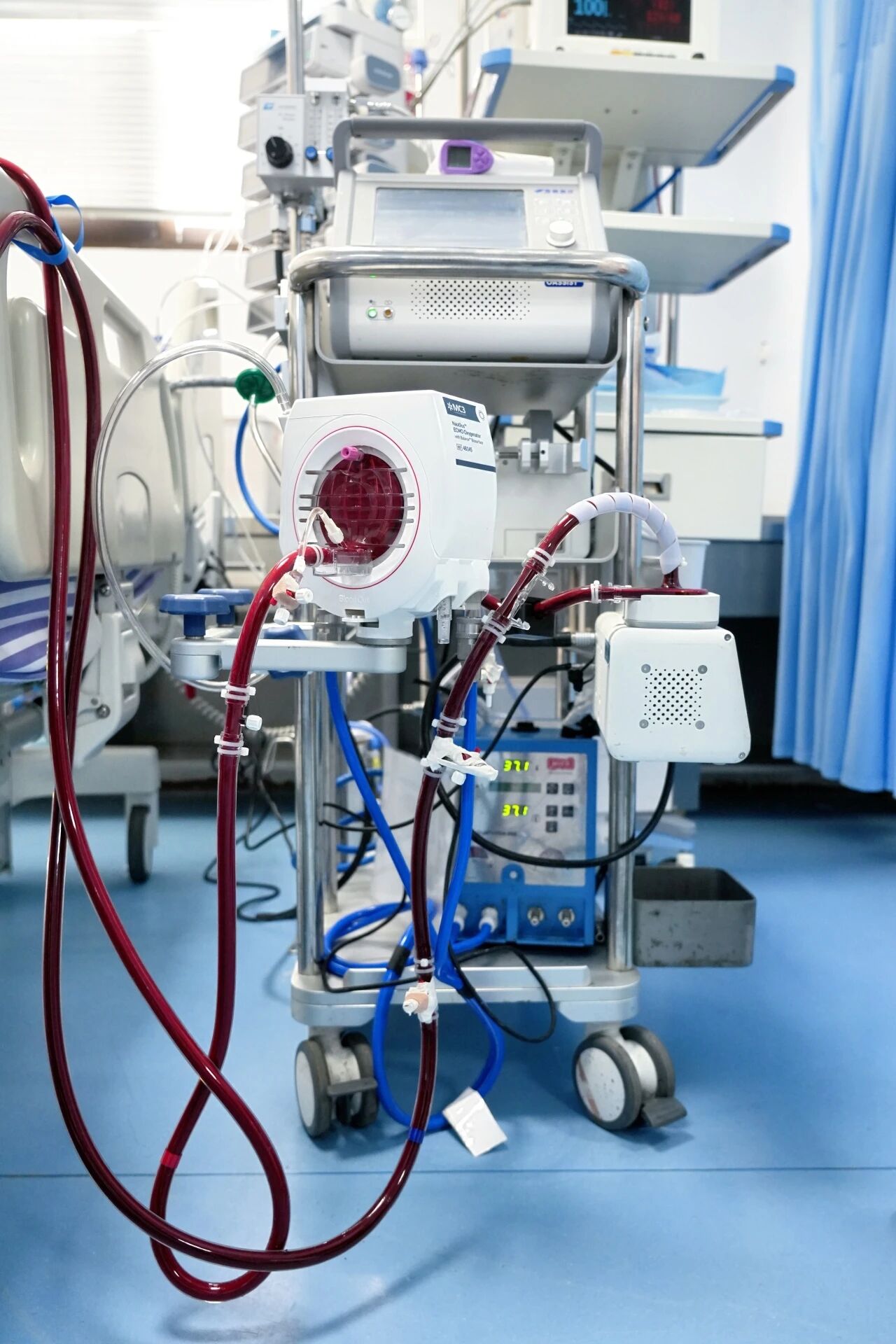 急诊医学科负责人陆志远介绍:“经过多轮抢救,侯先生血流动力学仍持续不稳定,急诊ECMO(体外膜肺氧合)团队迅速到位并启动救治,在ECMO的生命支持下,我们第一时间将患者转运至导管室,为冠脉造影术的顺利开展奠定了基础。”