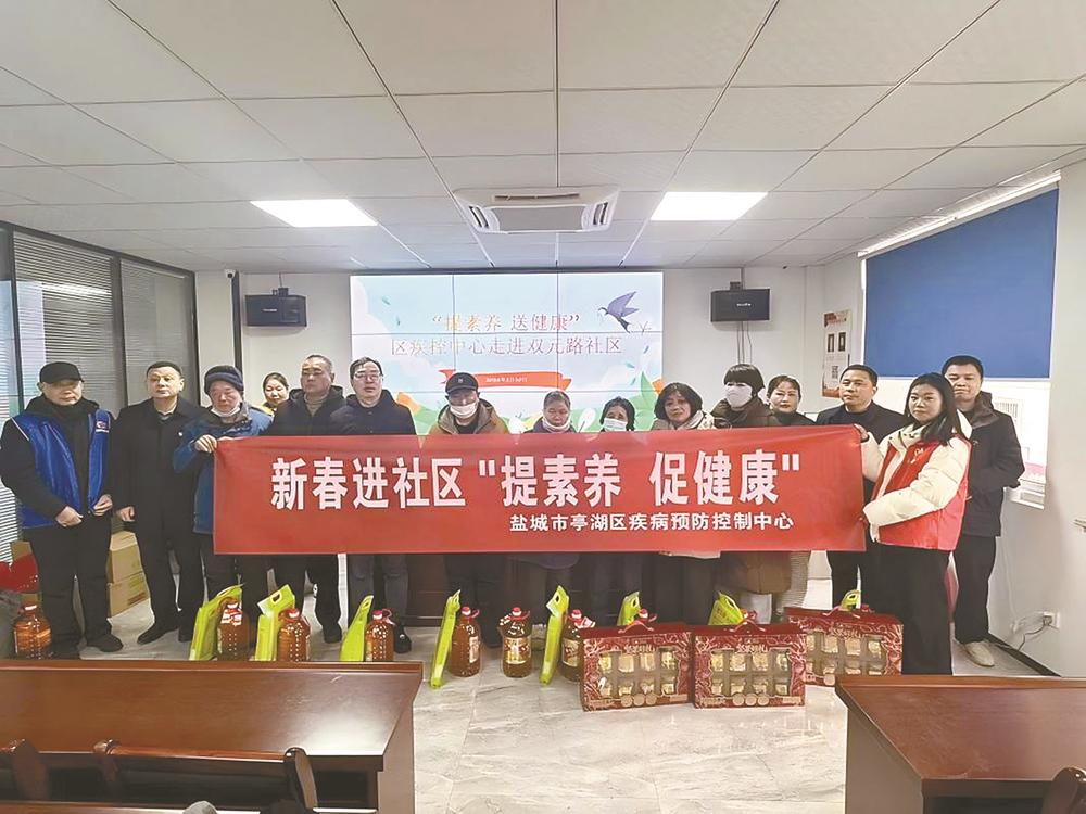 为深入践行党的群众路线,传递组织关怀,普及科学健康知识,2月10日,亭湖区疾病预防控制中心党总支组织中心一支部、二支部党员,前往文峰街道双元路社区、盐马路社区的14户家庭进行了新春走访慰问,并聚焦居民日常关切,开展了以膳食营养为核心内容的“提素养促健康”新春健康宣讲活动。