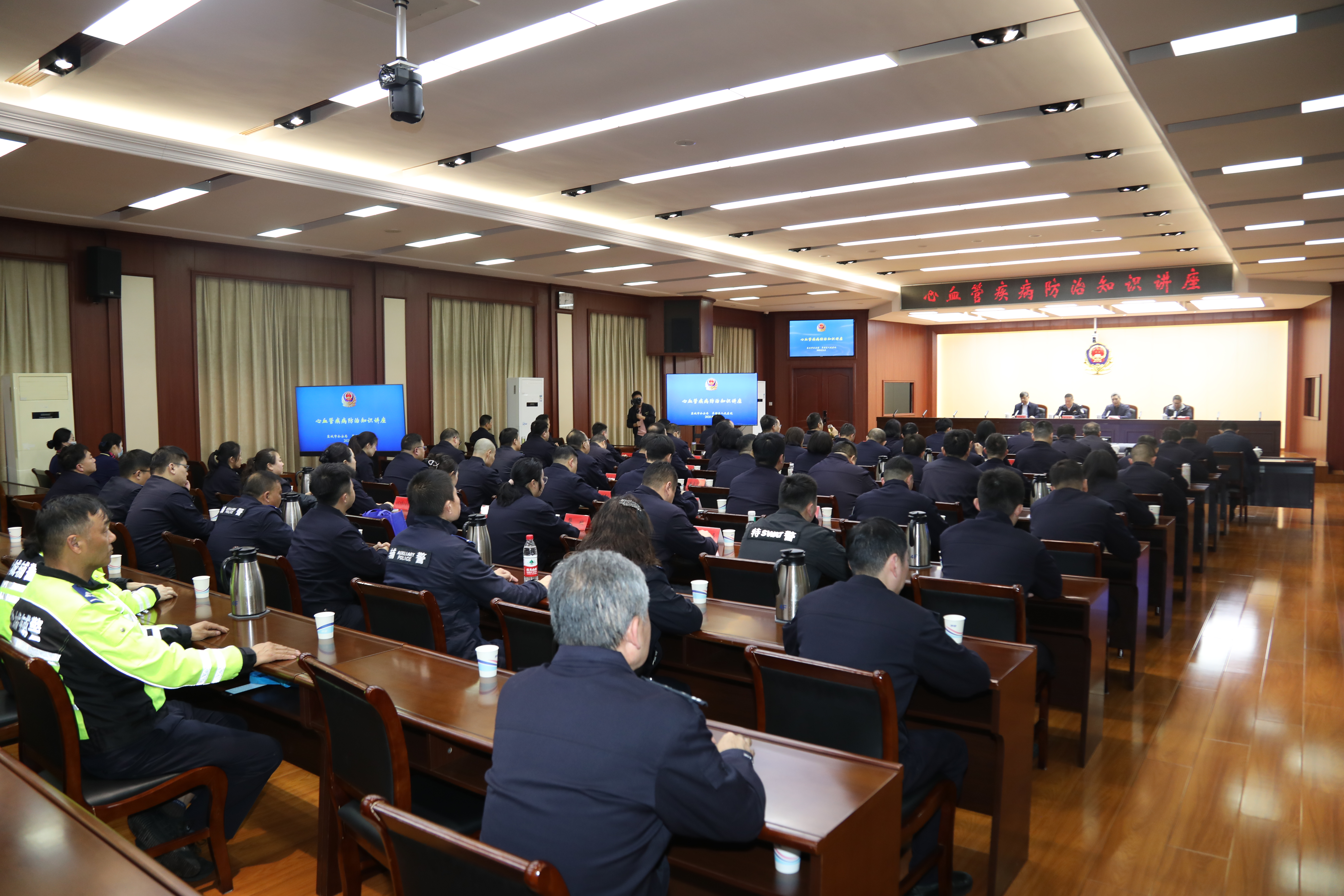4月9日下午,亭湖区人民医院专家团队走进盐城市公安局,为公安系统工作人员带来了一场以心血管疾病防治、剧烈运动前心脏健康评估为主题的知识讲座,切实关爱一线干警的身心健康。市公安局各部门分管负责同志、联络员及民辅警代表共约80人参加了活动。