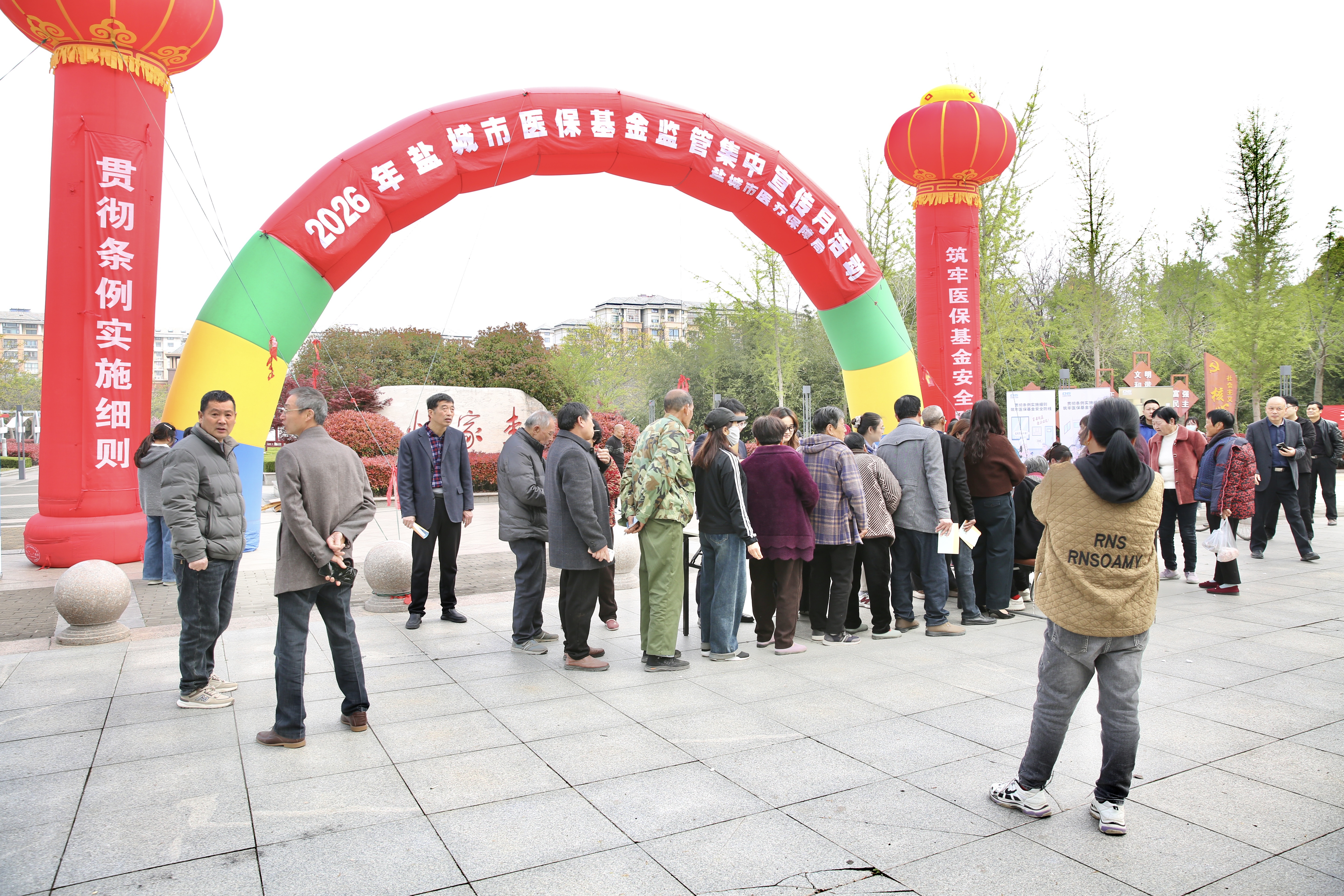 4月17日,由盐城市医疗保障局举办的2026年医保基金监管集中宣传月活动,在亭湖区盐东镇健康主题广场热闹启幕、有序开展。本次活动以“贯彻条例实施细则,筑牢医保基金安全防线”为主题,现场设立宣传服务台和知识展板,通过发放相关宣传折页、医保政策答疑解惑、检查血糖及测量血压等多种形式,鼓励群众积极参与,使医保基金安全理念深入人心,着力营造全社会共同守护医保基金的浓厚氛围。