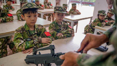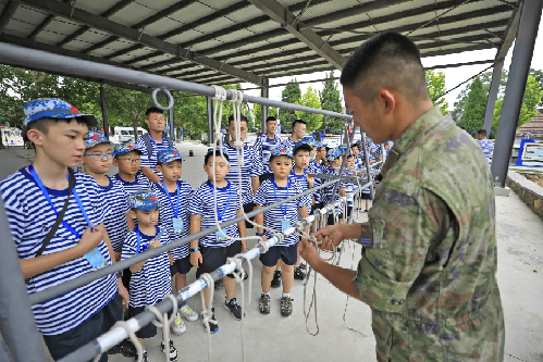 近日,海军陆战队某旅举办为期3周的“迷彩童心筑军梦”军娃夏令营活动,打造属于小海娃们的专属假期套餐。站军姿、唱军歌、叠军被、学技能……20余名小海娃欢聚一堂,直观体验军旅生活。枪支分解与结合、整理内务、队列训练……丰富多彩的活动在小海娃心中播下了“红色”的种子,收获了别样的童趣年华。(张飞龙、姜顺、辛露)