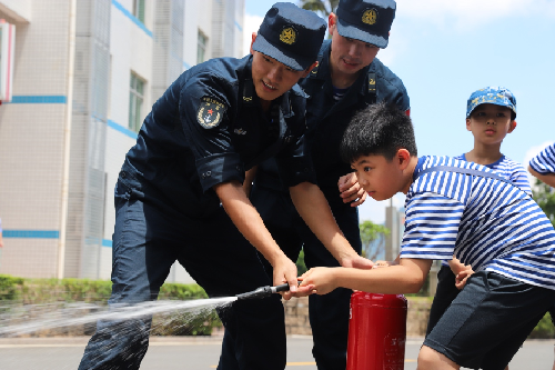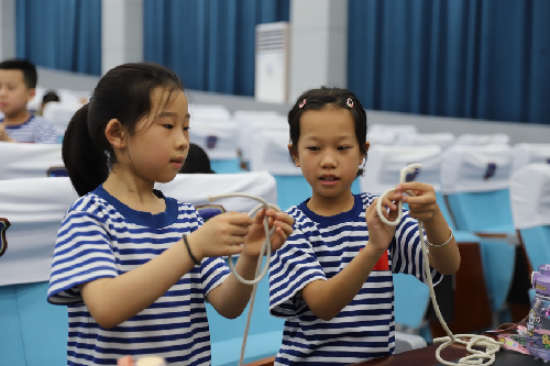 近日,东部战区海军某护卫舰支队举办“天湖小浪花”军事夏令营活动,80余名官兵子女齐聚军营,体验部队生活,感受军营魅力。活动中,该支队组织军娃学习国防知识、认识武器装备,还组织进行了战伤救护、消防灭火、船艺绳结等活动,让孩子们既体验“海”味,又享受“趣”味。(杨海帆、刘敏、吴帅广、许海峰)