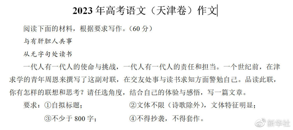 2023年全国高考6月7日上午拉开帷幕。以下是教育部教育考试院命制的全国甲卷、全国乙卷、新课标I卷、新课标II卷、天津卷作文题。