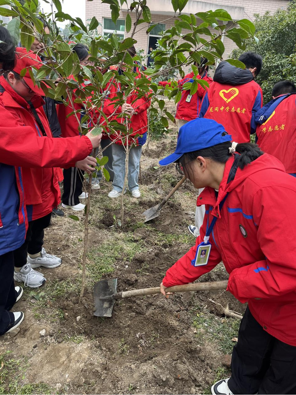 暮色降临时,新栽的树苗在晚风中舒展嫩芽。当我们把铁锹归还工具室,带走的不仅是袖口的草木清香,还是少年与树苗共同书写的成长契约。这场植树节志愿活动终将以青春的名义,在岁月深处长成一片挺拔的森林。