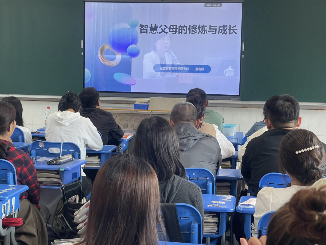 ●家长课堂:赋能智慧养育学校组织家长线下观看省教科院夏春娣教授主讲的《智慧父母的修炼与成长》直播讲座,各班家长齐聚教室,学习亲子沟通策略与家庭心理环境营造方法,会后各班班主任结合班级实际与家长交流育人经验。