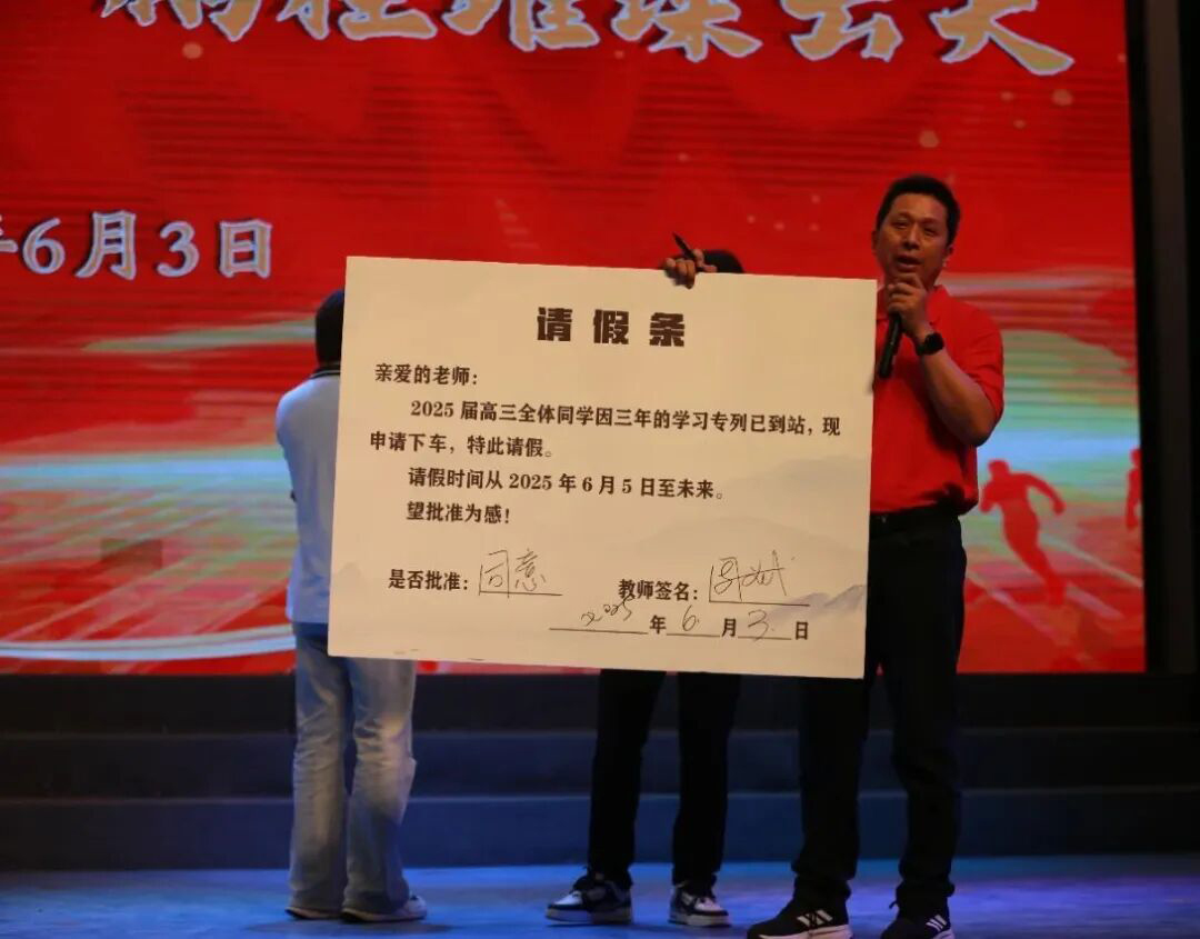 全体学子以一曲《相信我们会创造奇迹》唱响信念,高三年级周一斌主任代表全体班主任庄重“批假”,宣布2025届高三学子正式“出征”!在“青春宣言”的铮铮誓言中,田中学子的豪情直冲云霄。《再见》旋律响起,不是终点,而是奔赴高考和未来的号角。