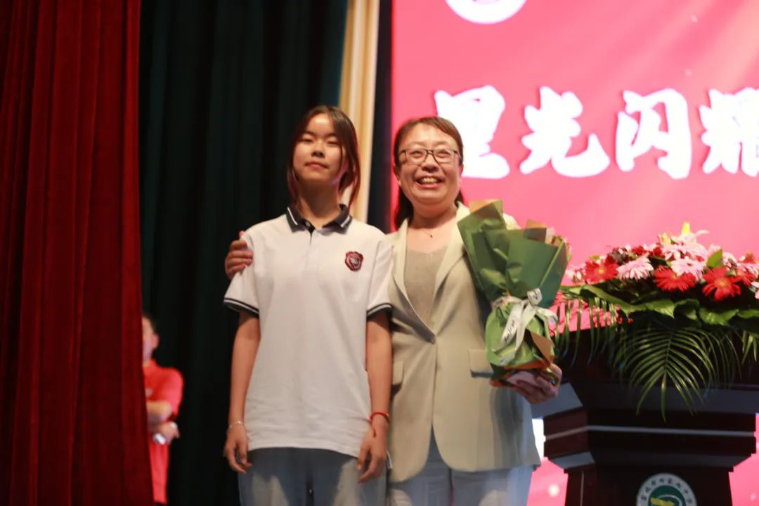 家长的祝福视频湿润了同学们的眼眶,那些平日不擅表达的父母,用最美好的词汇表达了对孩子们最真挚的祝福。高三12班张诗成家长代表登台,细数孩子蜕变点滴,言语间满是不舍与骄傲。教师代表嵇英姿老师的叮咛饱含期许,嘱托学子心怀热望,行稳致远。班主任们一曲《倔强》合唱,是言传身教的最后一课;逐一送上的祝福箴言,化作远行最温暖的背囊。张成华副校长以一首原创诗歌《少年游》,代表高三管理团队为孩子们送上最美好的祝愿。
