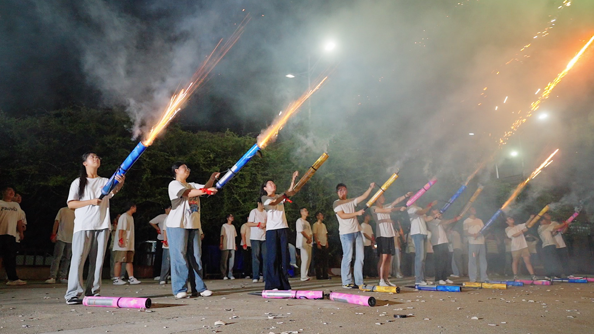 当晚最震撼的环节,当属篮球场上的“摔碗誓师”。星光下,54名同学手持粗陶碗,在班主任带领下庄严宣誓:“不负十载寒窗,不负师长守望!不惧前路风雨,不憾今日锋芒!”随着“一、二、三!摔!”的口令,碗碎声与呐喊声交织,鼓乐齐鸣,烟花绽放,尽显少年豪情。