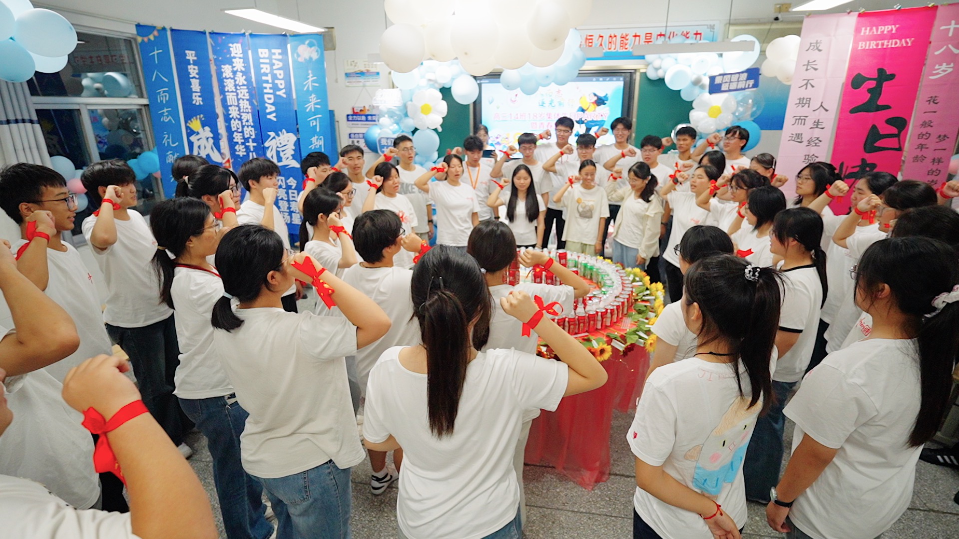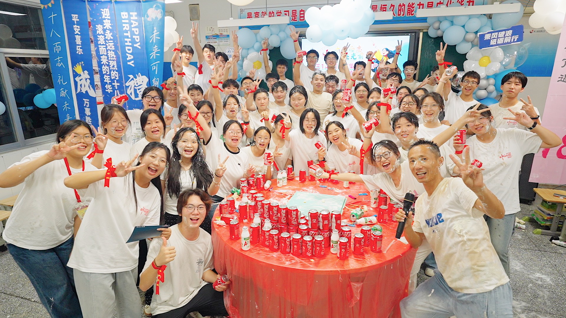 夏末的阜宁县陈集中学,晚风裹挟着书卷气,高三14班教室内却暖意涌动。8月31日晚7时,“十八而志逐光前行”的醒目条幅,悬挂的彩带与向日葵花束相映,可乐、摔碗等道具整齐摆放——一场专为54名同学筹备的18岁集体生日Party暨青春誓师活动在此启幕。活动以“纪念成年、激发拼搏”为核心,将班级成长与高考奋斗紧密联结,更让学校“坚·润”文化、“六润”育人体系在仪式感中落地生根,成为践行“办有温度的教育”办学目标的生动注脚。