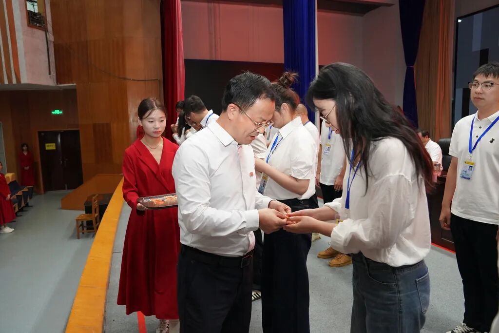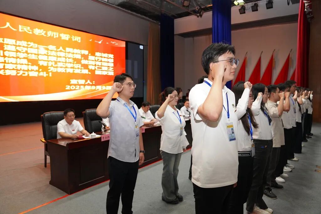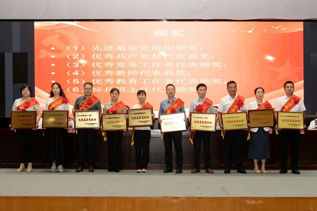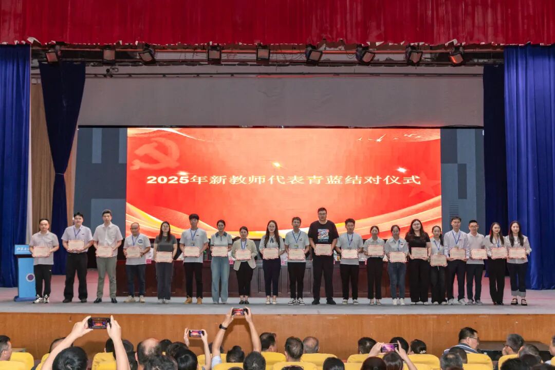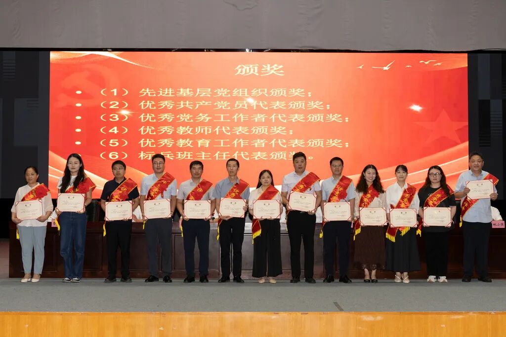 会上表扬了2024-2025学年度先进基层党组织、优秀共产党员、优秀党务工作者、优秀教师、优秀教育工作者、标兵班主任,新入职的教师进行了集体宣誓,现场举行了青蓝结对仪式,向2025年金榜题名教工代表赠送学习用品。