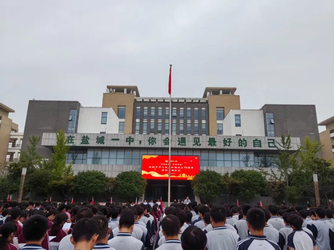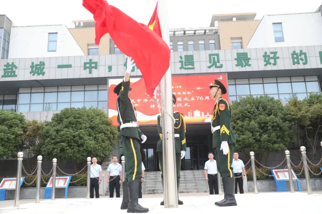 秋雨润泽,红旗更艳。9月29日早晨,盐城市第一中学举行了“在国旗下,向祖国宣誓”暨庆祝中华人民共和国成立76周年特别升旗仪式。学校党委书记、校长陈建权携领导班子全体成员与全体师生共同参与仪式。仪式由尤为军副校长主持。