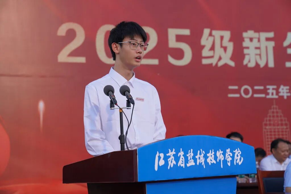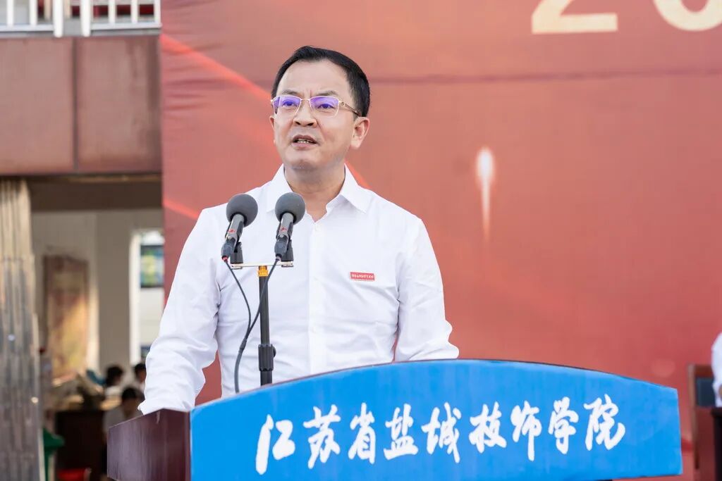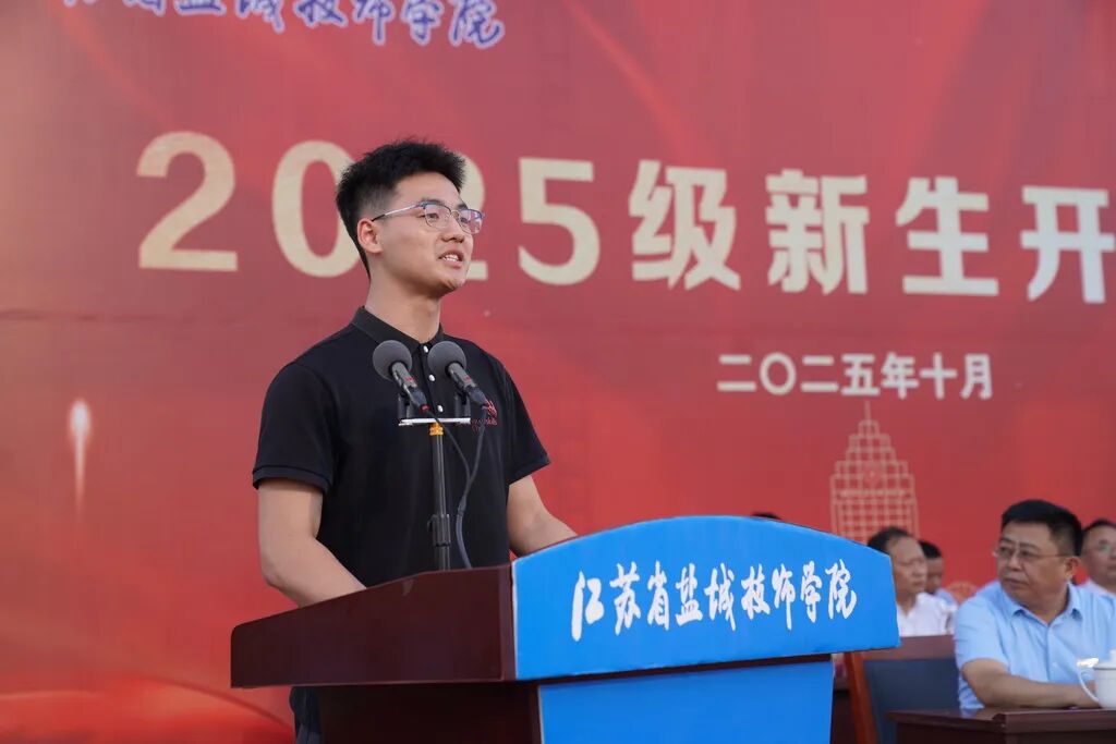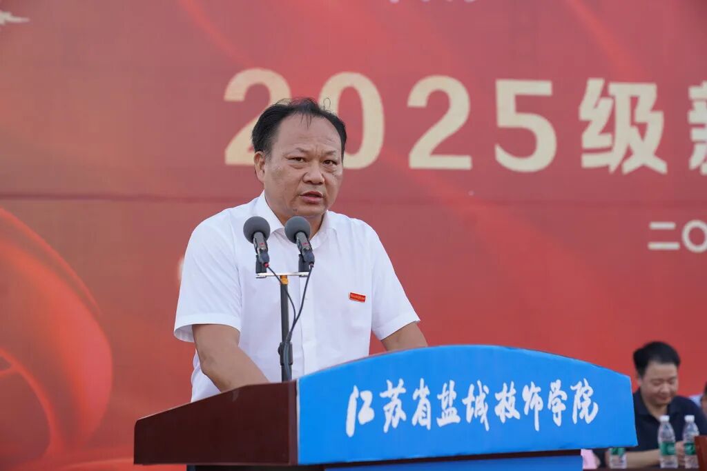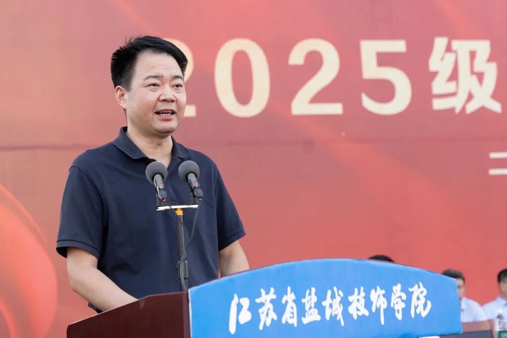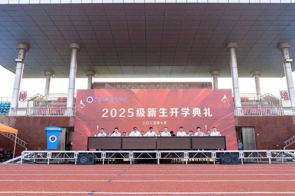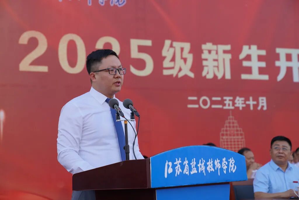 10月10日下午,盐城技师学院在海洋路校区举行2025级新生开学典礼。校长张兵作题为《技能为刃破茧匠心为舵远航》的讲话,党委副书记、副校长夏建友宣读《关于颁发2025级“新生校长奖学金”的通知》,副校长唐监怀、葛富有,纪委书记陆伟,党委委员曹永红、姚小强出席,副校长郑海风主持。