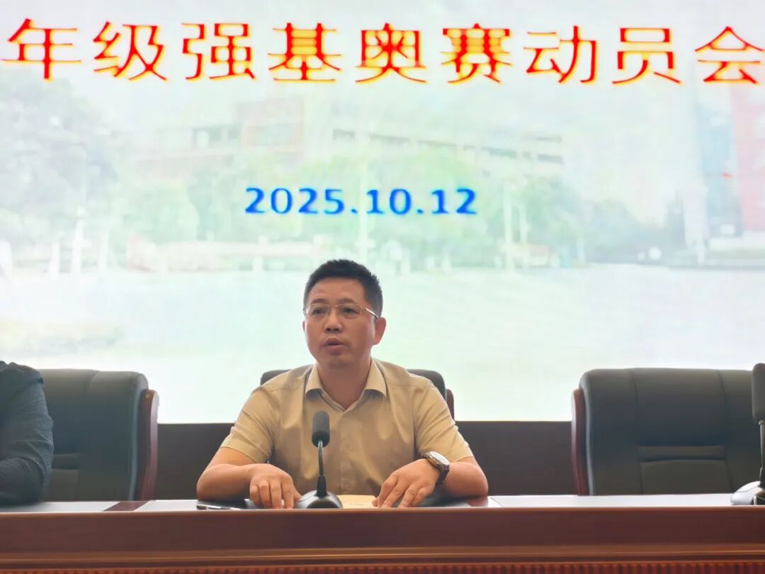 会议伊始,高一年级部张金月主任发表了热情洋溢的动员讲话。他首先向同学们阐述了奥赛竞赛的深远意义、强基选拔的国家战略背景,指出强基竞赛不仅是通往顶尖高校的重要途径,更是锤炼思维、磨砺意志、培养科研素养的宝贵平台。张主任鼓励同学们要敢于有梦、勇于追梦,将个人兴趣与国家需求相结合,在竞赛的广阔天地中挑战自我,实现超越。