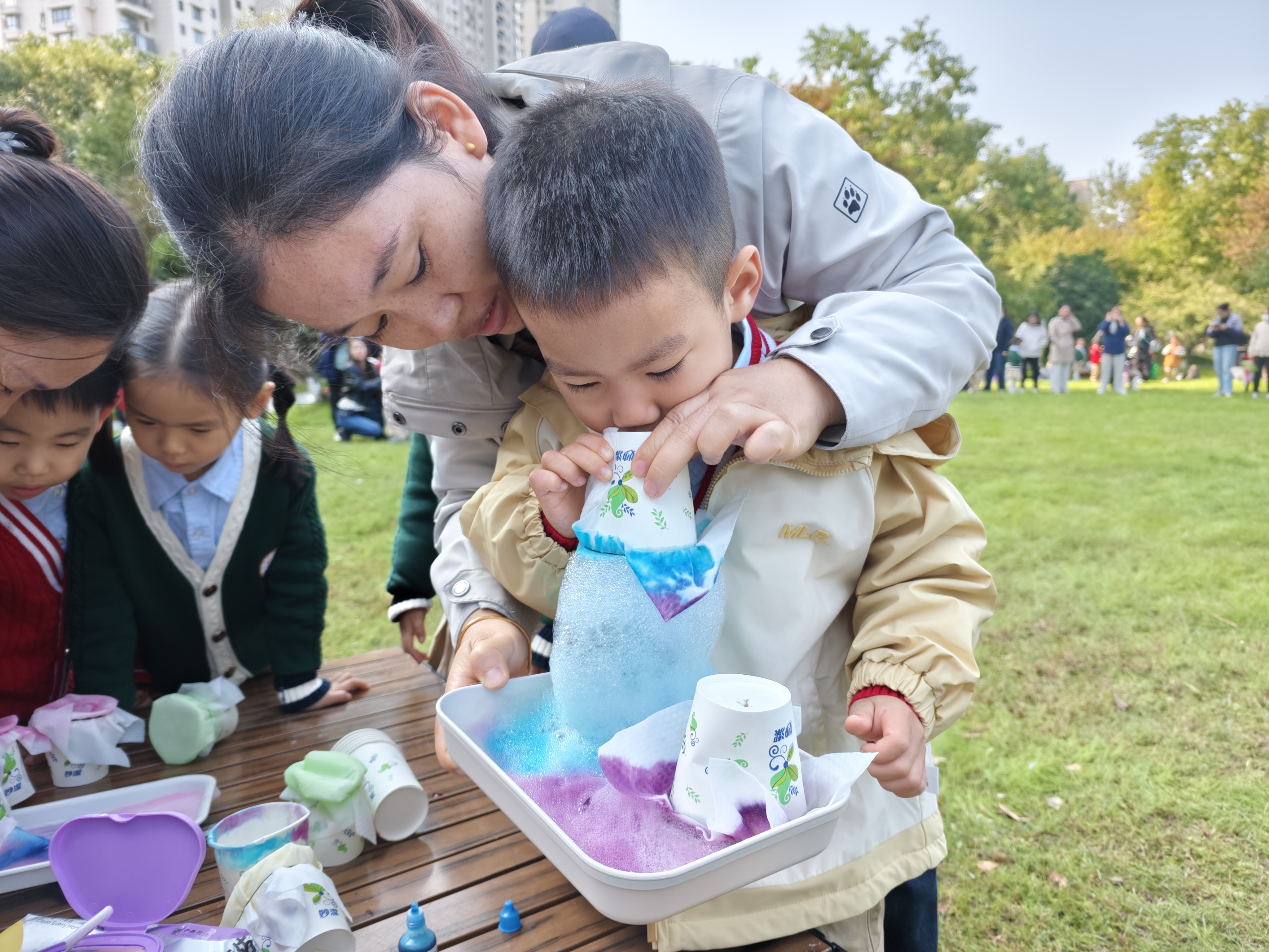 此外,小班、托班的孩子们开展了以“玩风啦”为主题的亲子秋游活动,活动将趣味科学探索和本土文化体验结合起来,既激发了孩子们的好奇心和探索欲,又让他们在观察、动手的过程中,培养了科学感知能力和文化认同感。