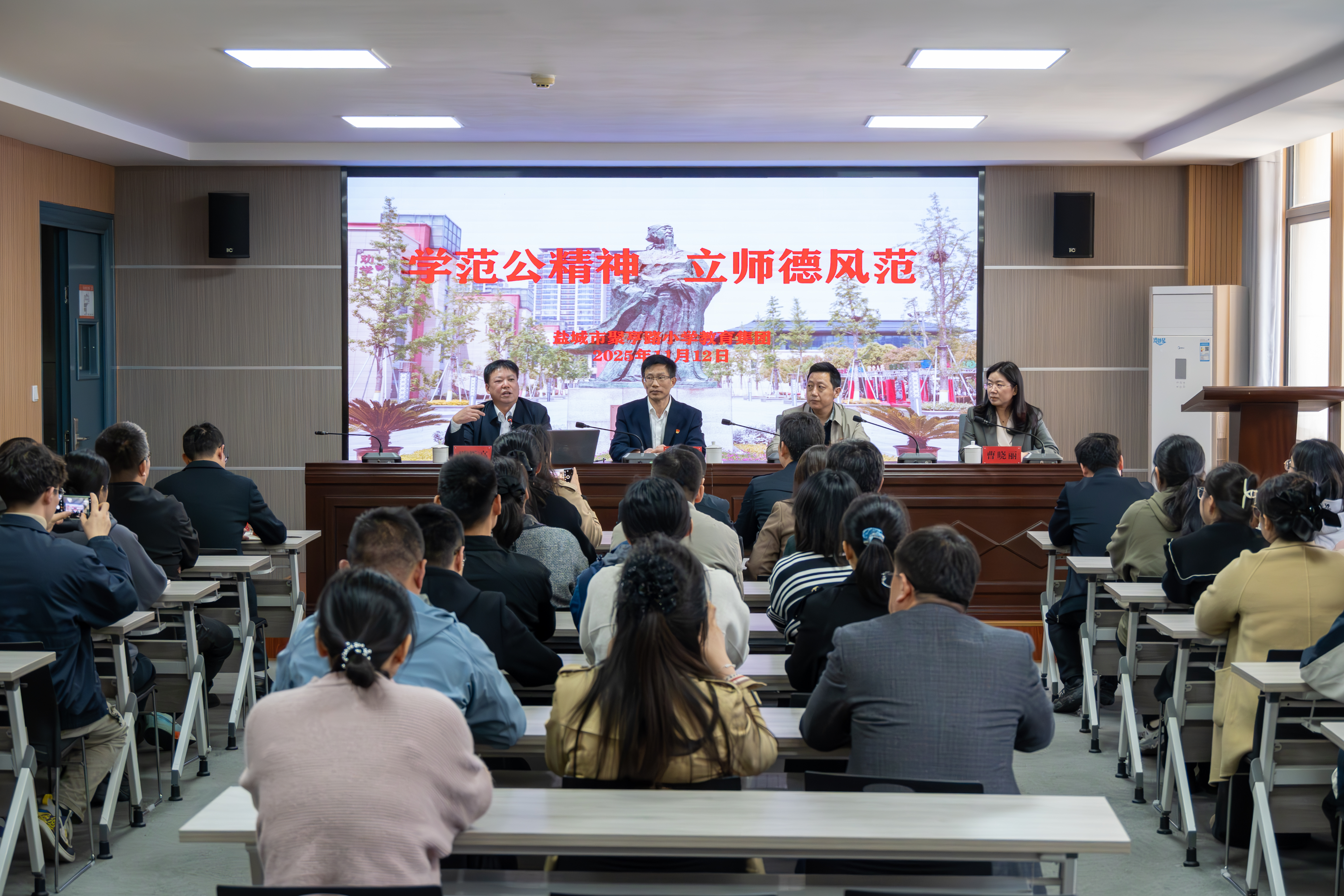 聚亨路小学教育集团党委书记张新高以“学范公精神 立师德风范”为题讲授专题党课,深刻阐释了范仲淹“先忧后乐”的家国情怀与“德才兼备”的教育理念,引发在场师生强烈共鸣。