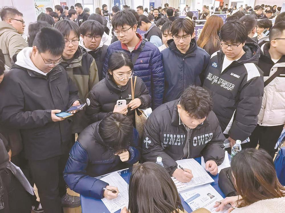 “我校遵循‘促进高质量充分就业、健全技能人才与产业需求精准对接机制’原则,建立‘三层筛选机制’,坚持质量优先,优先邀请盐城本地重点产业链龙头企业、校企合作示范单位和全国高新技术企业等参加招聘会,平均每位毕业生有3.66个岗位可供选择。”郑海风告诉记者,盐城技师学院每年毕业生盐城本地就业率稳定在70%左右,既为学子搭建了就近就业平台,也精准匹配了地方产业对高技能人才的需求。此次招聘会该校还特别安排了近700名非毕业年级学生现场观摩,直观了解企业招聘标准与产业趋势,实现就业服务向前端延伸、人才培养向产业聚焦。