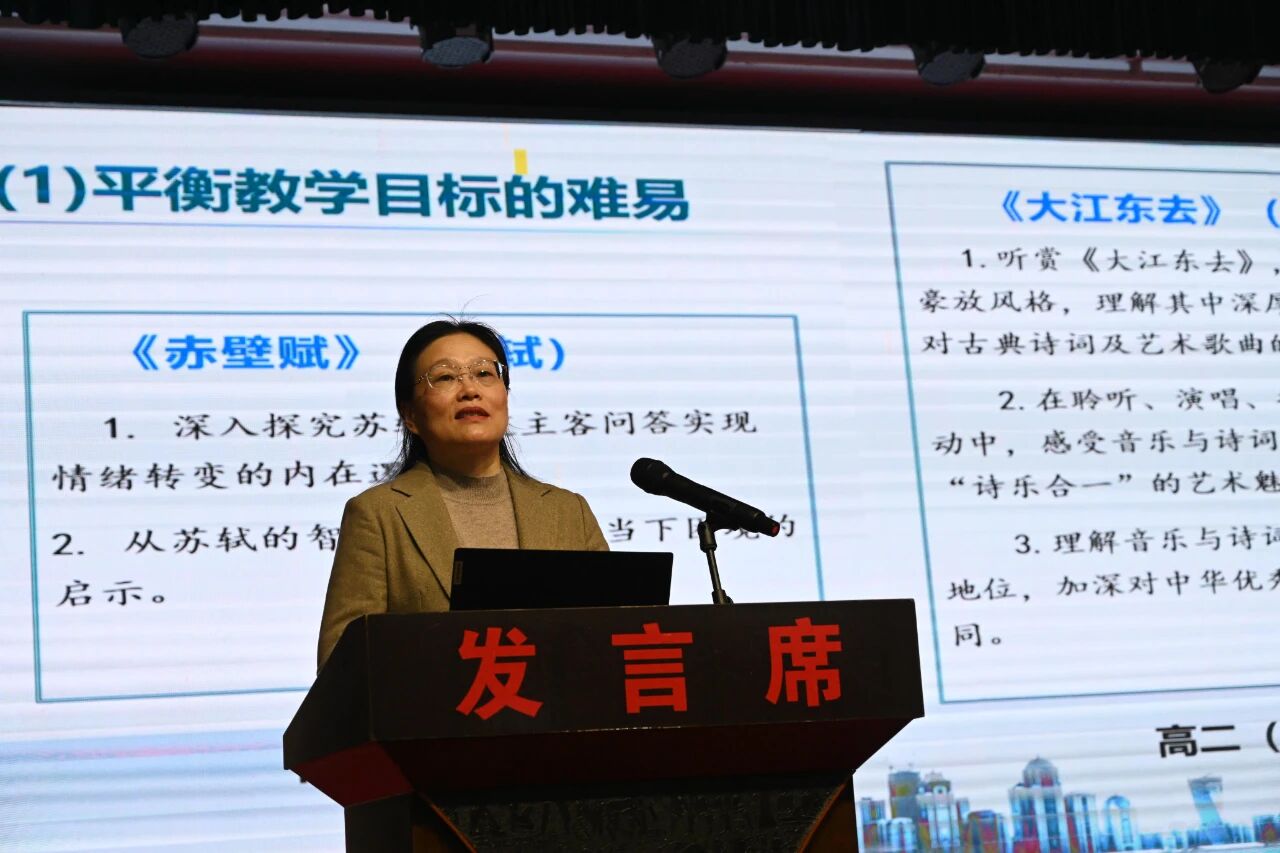 常州市金坛区教育局副局长张五芳围绕教师专业成长的现实困境与突破路径形成系统性实践指引,精准点出教师在职业发展中面临的课堂实践典型困惑,启发与会者深入思考;进而从锚定“学为中心”、依托专业平台、坚持阅读与思考等多个维度,提出切实可行的突破策略,为教师在专业表达与砥砺躬行的道路上指明了清晰方向。