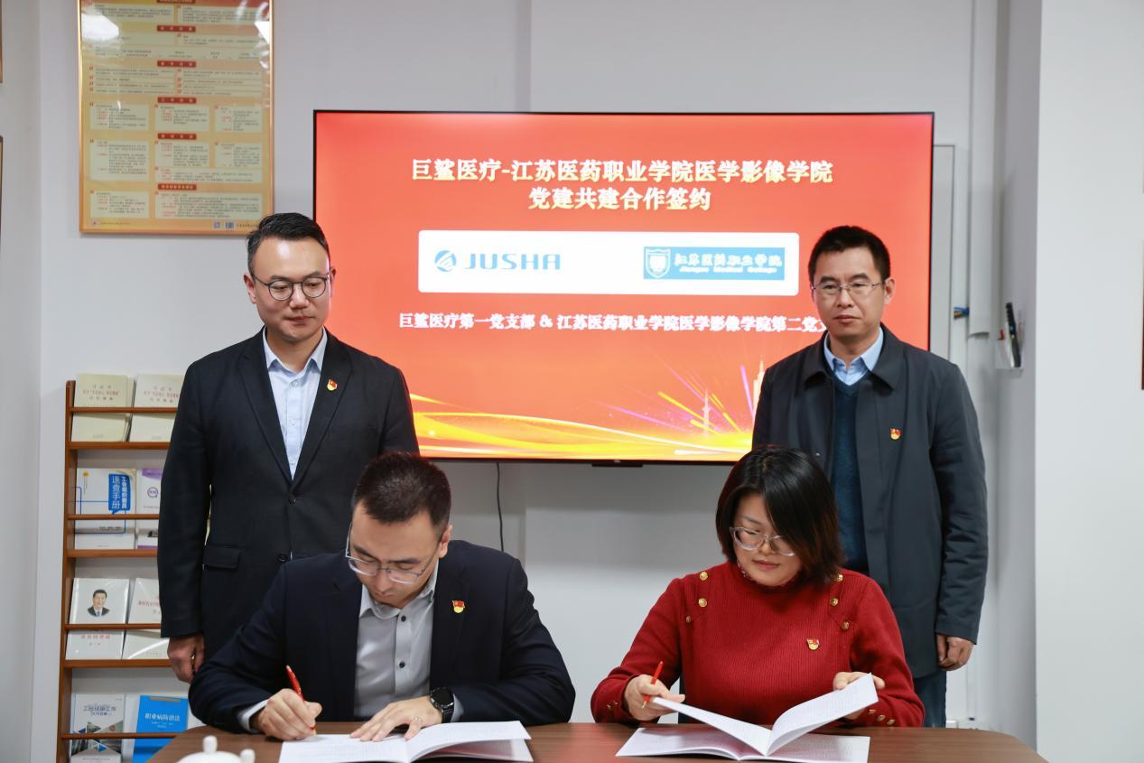 随后,在全体与会人员的共同见证下,医学影像学院第二党支部书记尚文文与巨鲨医疗第一党支部书记刘涛郑重签署《党建引领·产教融合共建协议》。协议明确,双方将聚焦智能医疗装备技术等核心专业方向,共建“巨鲨智能医装订单班”,联合开发课程标准与教学案例,共建“医用材料认知角”和“医工融合教学资源包”;同时推进师资互派、学生实习、就业推荐等深度合作,切实将党的组织优势转化为推动产教融合、服务产业发展的内生动力。
