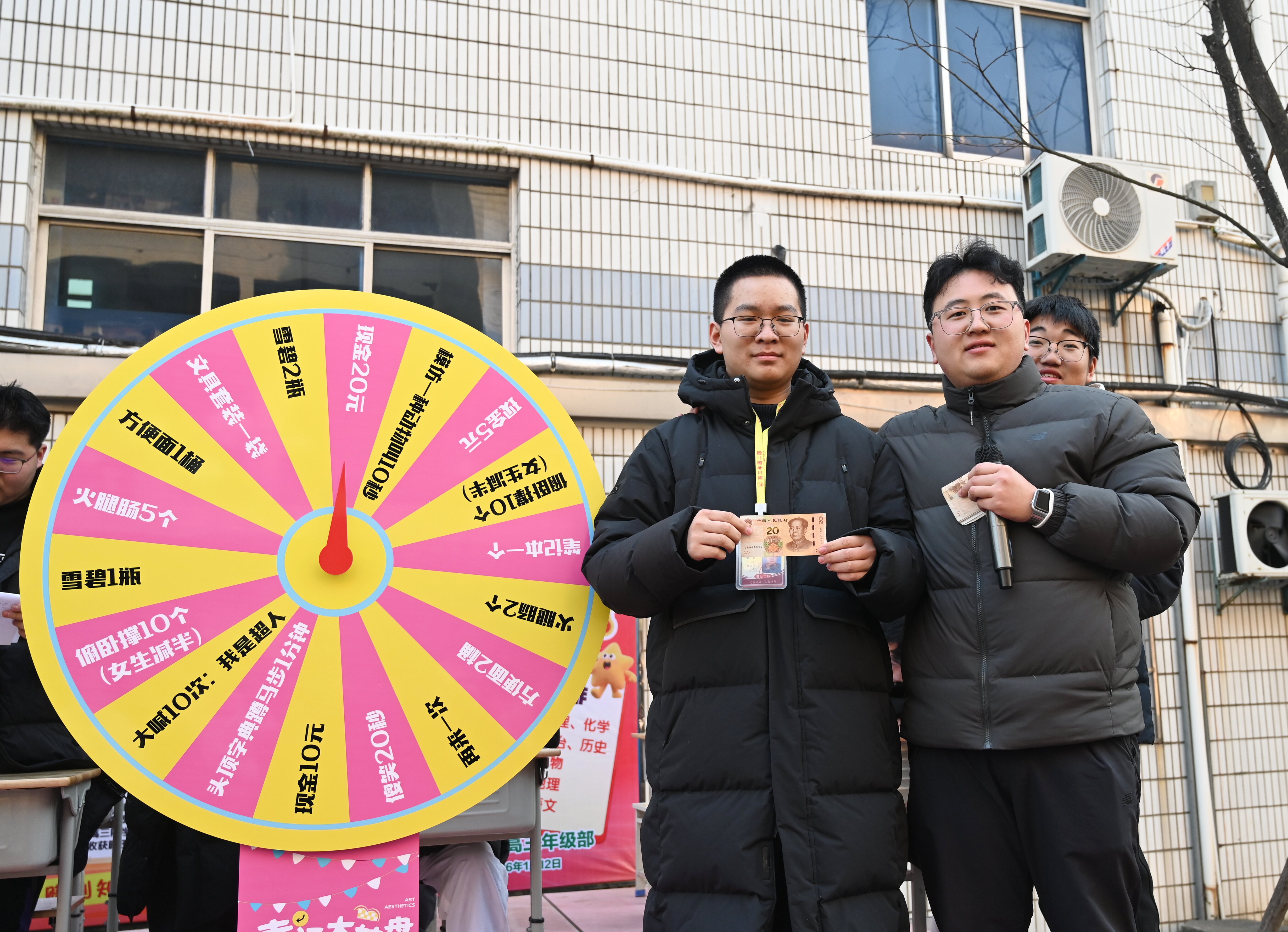 冬日暖阳下,幸运转盘的指针不停转动,欢声笑语萦绕校园。“答对两道数学题就抽中20元现金,知识真能换来‘双收获’!”阜宁县陈集中学高三(11)班王泽一同学手持奖励,笑容格外灿烂。近日,该校推出的高三学科知识点“趣味答题抽奖大转盘”活动,以创新形式为紧张的高三备考生活注入活力,成为校园里最暖心的风景线。