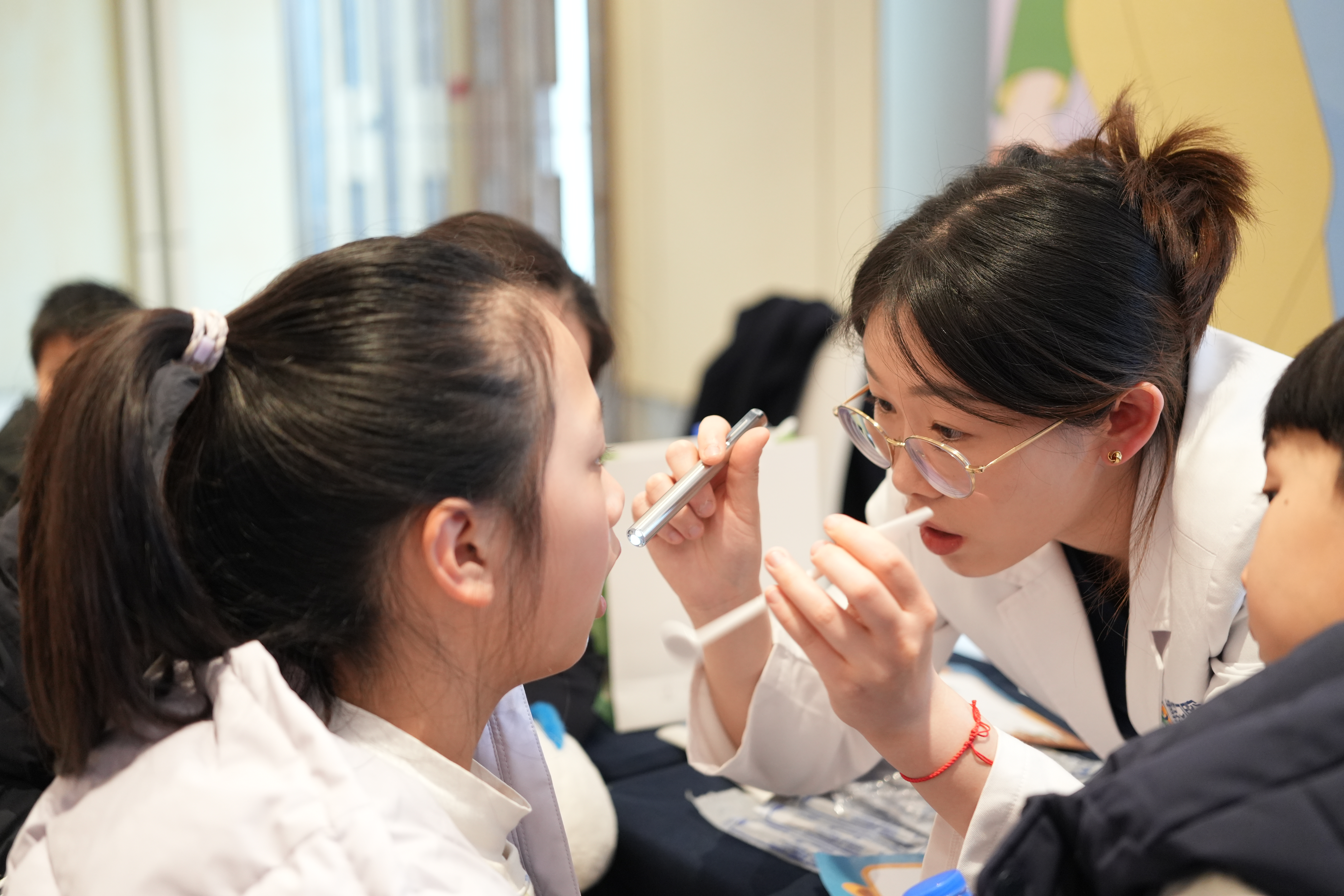 知识讲座之后是更令人期待的实践环节。倍美口腔医院设置了多个检查点,专业医生为每一位小记者进行免费口腔检查,并用内窥镜让孩子在屏幕上亲眼看到自己牙齿的“真面目”。许多孩子第一次如此清晰地观察自己的牙齿,既好奇又兴奋。“你的这颗六龄齿可以做窝沟封闭保护起来哦。”医生一边检查,一边向家长和孩子们给出个性化的护牙建议。随后公布的专属福利——涵盖全家多人的免费检查与洁牙服务,更是赢得了家长们的阵阵掌声。抽奖环节的欢声笑语,让健康知识与幸运喜悦交织在一起。