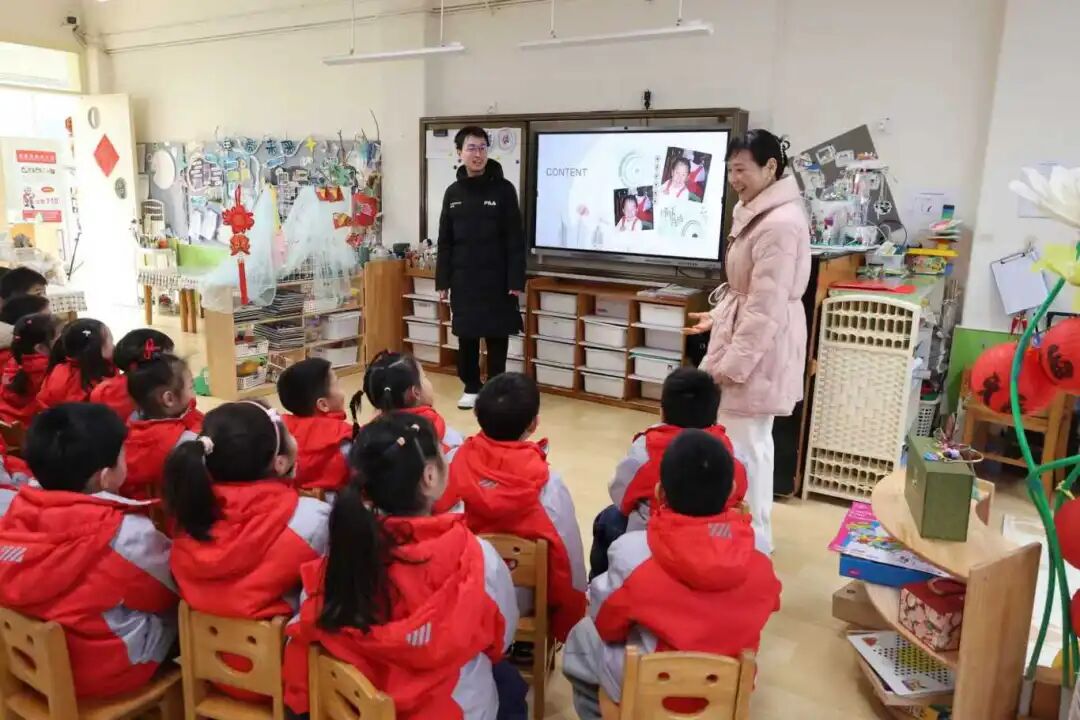当年的班主任马燕老师,带着一群活泼可爱的小朋友,用最热烈的掌声欢迎学长学姐归来。学子们在签到板上郑重签名,笔尖划过的不仅是名字,更是对时光的致敬、对母校的眷恋。随着大屏缓缓亮起,一段段泛黄的童年照片、一段段珍贵的旧时视频徐徐展开——原来,市幼儿园从未忘记每一个孩子的童年,那些儿时在园的点滴瞬间,都被用心珍藏在时光的宝盒里。“这个哥哥小时候脸圆圆的,像个小苹果!”“那个姐姐是短头发,眼睛亮亮的!”小朋友们瞪大好奇的眼睛,围着屏幕叽叽喳喳,“读图认人”,稚嫩的声音为时光增添了几分灵动。被认出的大学生逐一登台,结合儿时趣事,分享求学路上的坚持与大学生活的精彩,让“大学”这个在小朋友心中遥远又模糊的词汇,在时光的串联下变得具体而美好,悄悄点燃了他们对未来的向往与憧憬。大(5)班的周雅泽小朋友欢呼雀跃:“哥哥姐姐是榜样,我要向他们学习,上大学,上好大学!”