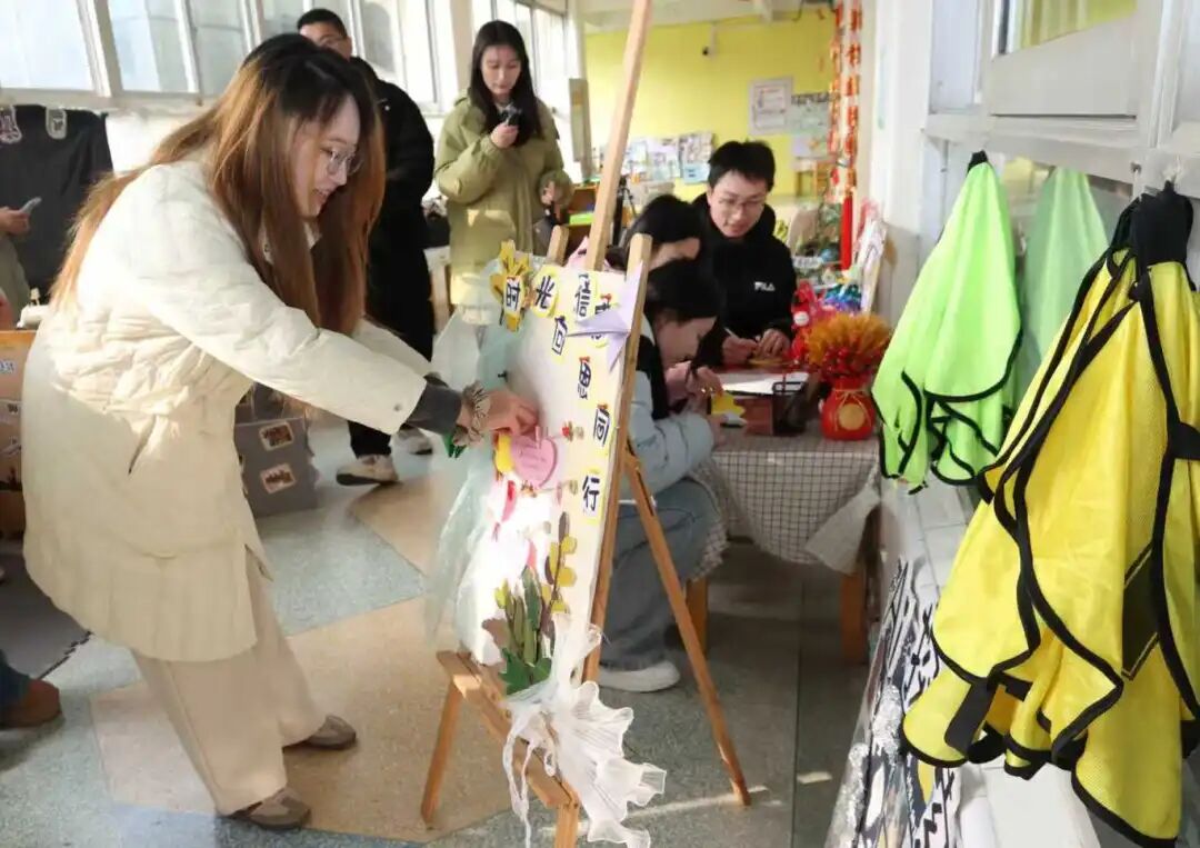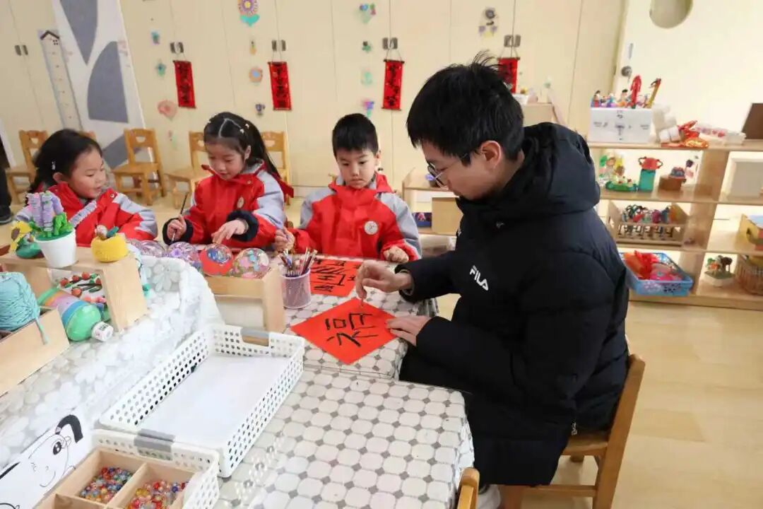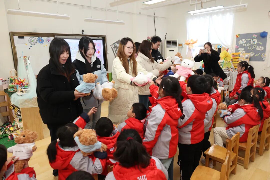 互动环节的温情,在时光里静静流淌。大学生代表带来悠扬的竹笛表演,笛声婉转,仿佛穿越了十六年的时光,勾起在场所有人的温柔回忆,也让小朋友们对传统民乐生出浓浓的热爱;小朋友们则以集体舞《过新年》热情回应,活泼的舞姿、灿烂的笑容,让大学生们仿佛瞬间重回童年时光:那些无忧无虑的日子,在眼前清晰浮现。对外经济贸易大学的李芷馨望着眼前聪明伶俐的弟弟妹妹们,动容地说:“母校是梦开始的地方,感谢这里用爱与耐心,为我们铺下人生第一块基石,这份温暖,在时光里从未褪色。”户外游戏区里,大小朋友尽情嬉戏,“没大没小”,没有年龄的隔阂,只有时光馈赠的纯粹快乐;美工区中,大家一同书写“福”字,绘制马年图案,笔墨间流淌着传统文化的韵味,也浸润着时光的温情。小朋友们将对哥哥姐姐的祝福、对未来的期待融入作品,在老师的细心指导下精心装入相框,作为时光的信物赠予学长学姐;而哥哥姐姐们也早已备好心意,那些印着各自大学校名的玩偶,带着青春的朝气与岁月的温情,成为弟弟妹妹们最珍贵的礼物。