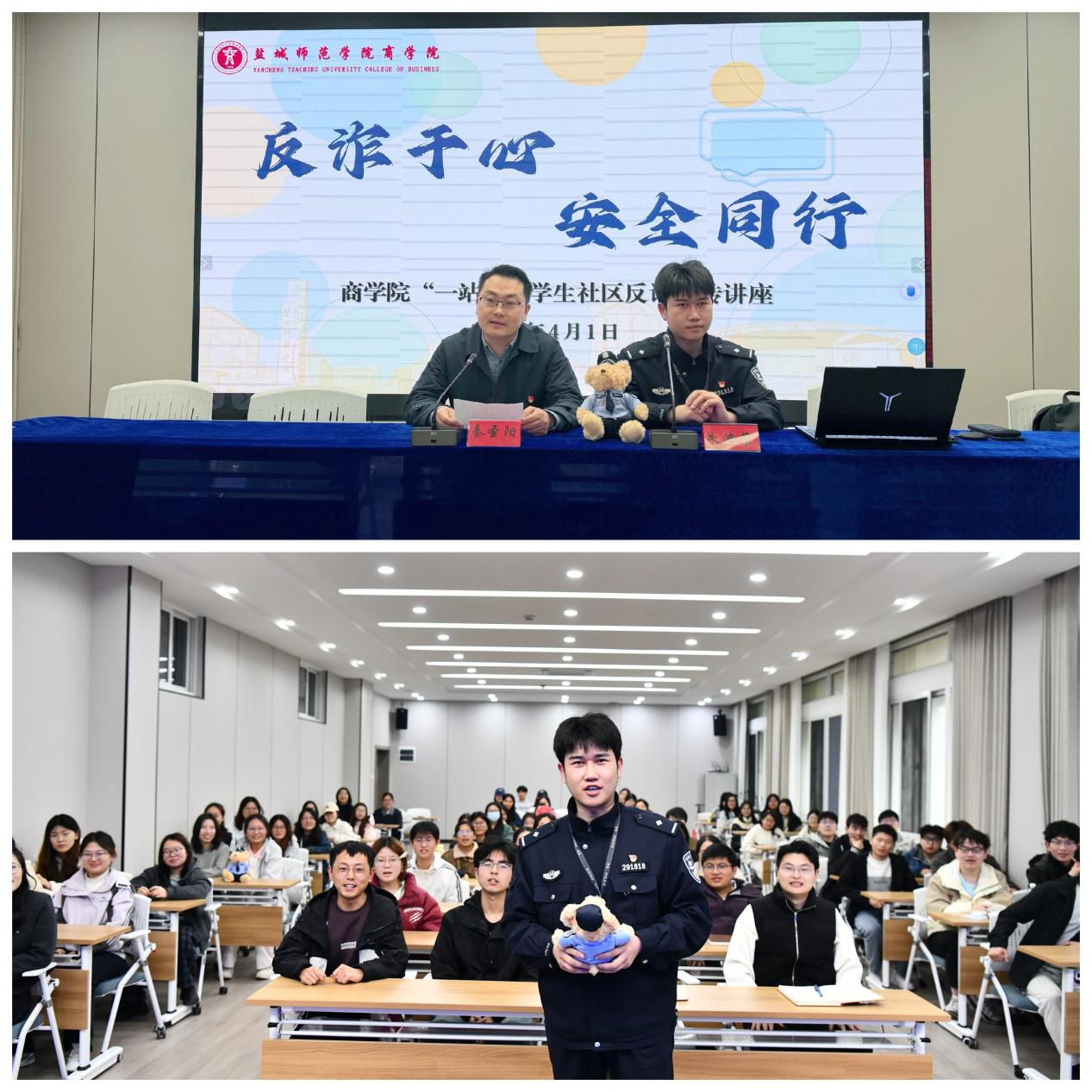 为进一步深化学风建设,提升学生防范电信网络诈骗的能力,筑牢校园安全防线,近日,盐城师范学院商学院举办“一站式”学生社区反诈专题讲座。本次活动特邀市公安局盐城经济技术开发区分局新城派出所朱津苇警官担任主讲。学院党委副书记秦圣阳主持讲座。