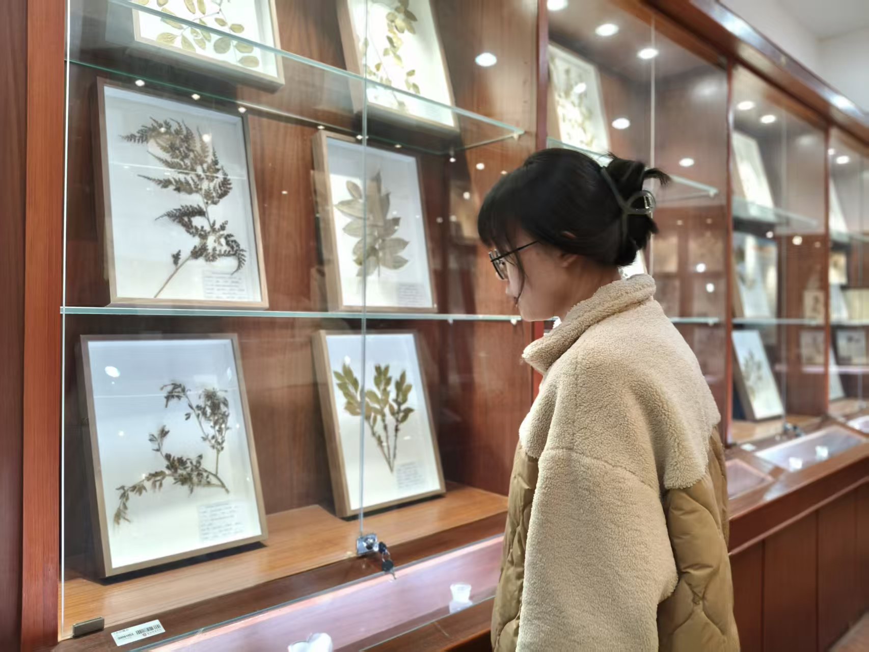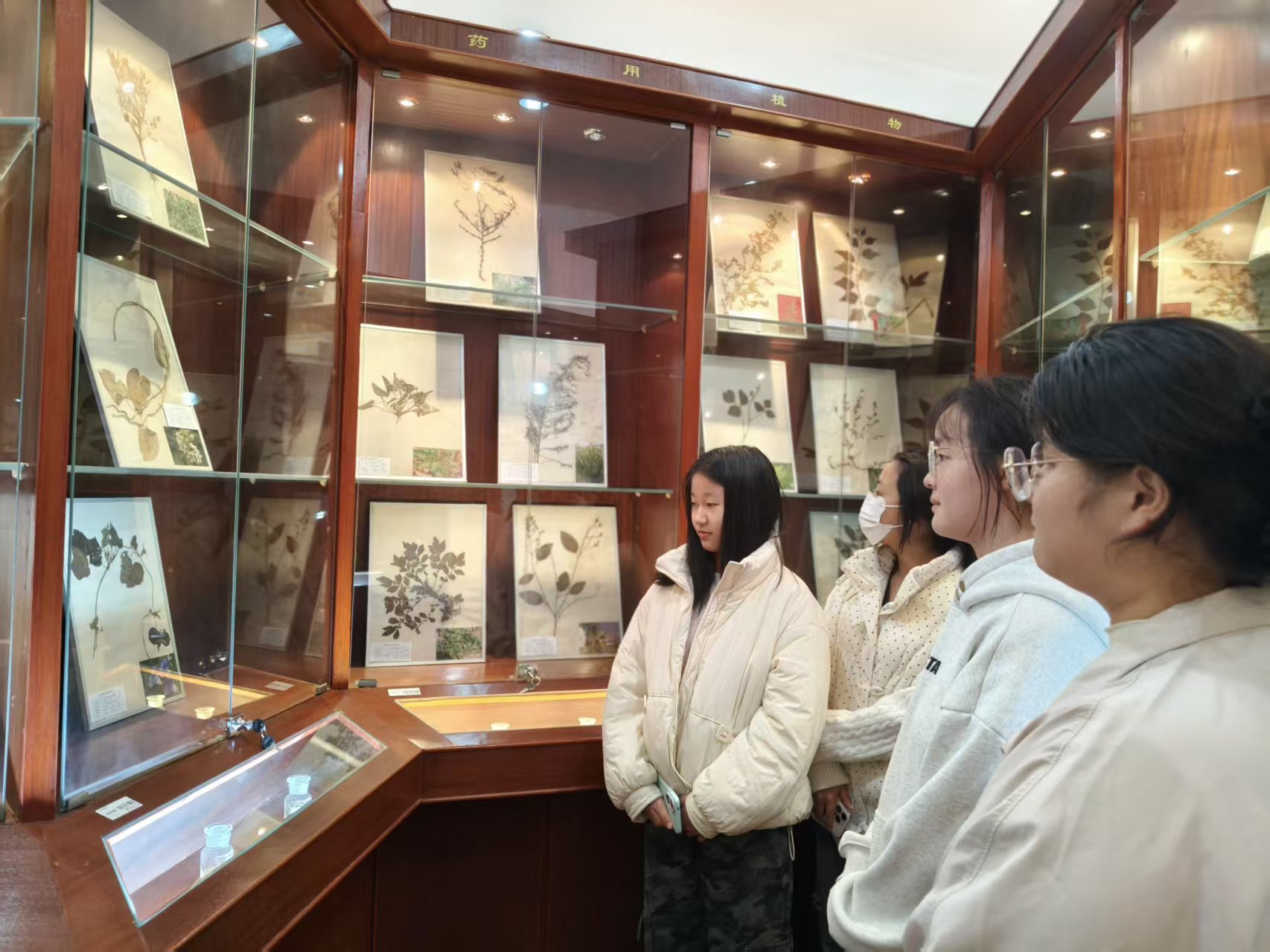 随后,师生们走进学院植物标本馆。玻璃展柜中,数百份湿地植物腊叶标本整齐陈列,历经专业压制与保存,叶片脉络清晰可见、花果形态完整如初。从芦苇、碱蓬等滨海常见草本,到珍稀濒危的湿地木本植物,标本完整呈现了黄海湿地植物群落的物种多样性、生态适应性与演化脉络。同学们俯身细观、认真研读,在方寸标本间读懂草木枯荣的生命节律,触摸湿地生态的原真底色。此次近距离观摩,不仅夯实了植物分类、湿地生态等专业知识基础,更让学子们深刻体会到生物标本作为“生态档案”的科学价值与守护湿地基因库的时代使命。