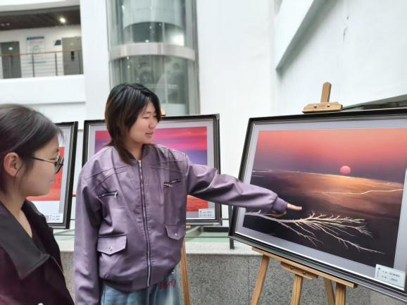 本次研学首站为湿地生态摄影展。展厅内,百余幅精品影像定格黄海湿地的万千气象与生灵百态。从珍稀鸟类的瞬间掠影到湿地滩涂的四季更迭,从微观生灵的鲜活细节到宏观生态的磅礴画卷,每一幅作品都生动展现了中国黄(渤)海候鸟栖息地——这一世界自然遗产的独特风貌与生物多样性之美。同学们驻足观赏、轻声交流,在视觉盛宴中直观感受湿地生态系统的蓬勃生机,深刻认识黄海湿地作为全球候鸟迁徙“国际机场”的重要生态价值。