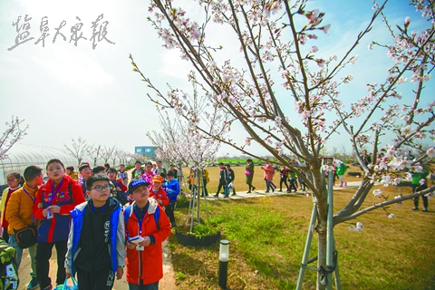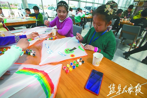 阳春三月正是赏花的时节,3月31日,来自建军路小学的50余名盐城晚报小记者组团来到位于盐城经济技术开发区步凤镇三龙村的康森生态园,观看落英缤纷的美景,欣赏樱花飞舞奇观,小记者们现场采访,手绘风筝比赛,在充分享受大自然熏陶的同时,增长了知识,度过了充实而欢快的一天。盐阜大众报报业集团全媒体记者 宋晓华/文 郜野乔/图 图为小记者们展示自己画好的风筝。